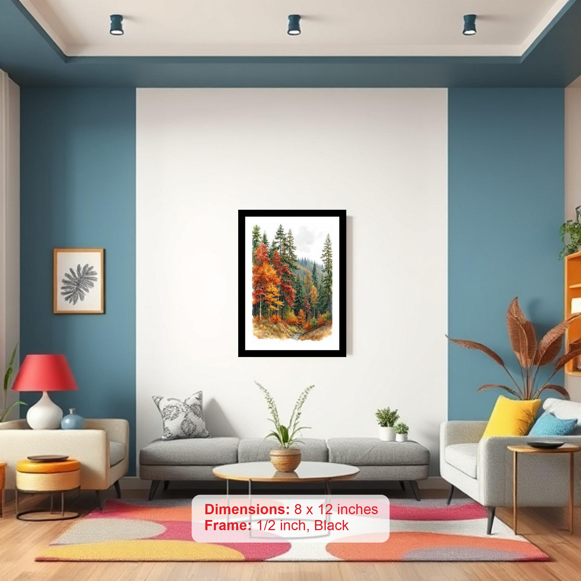 Captivating Watercolor Portrait: Vibrant Forest Landscape with Majestic Mountains, Photo Frame With Photo, Wall Hanging Art, Wall Decor, Home Decor, Picture Frame | Size: 8 x 12 inches