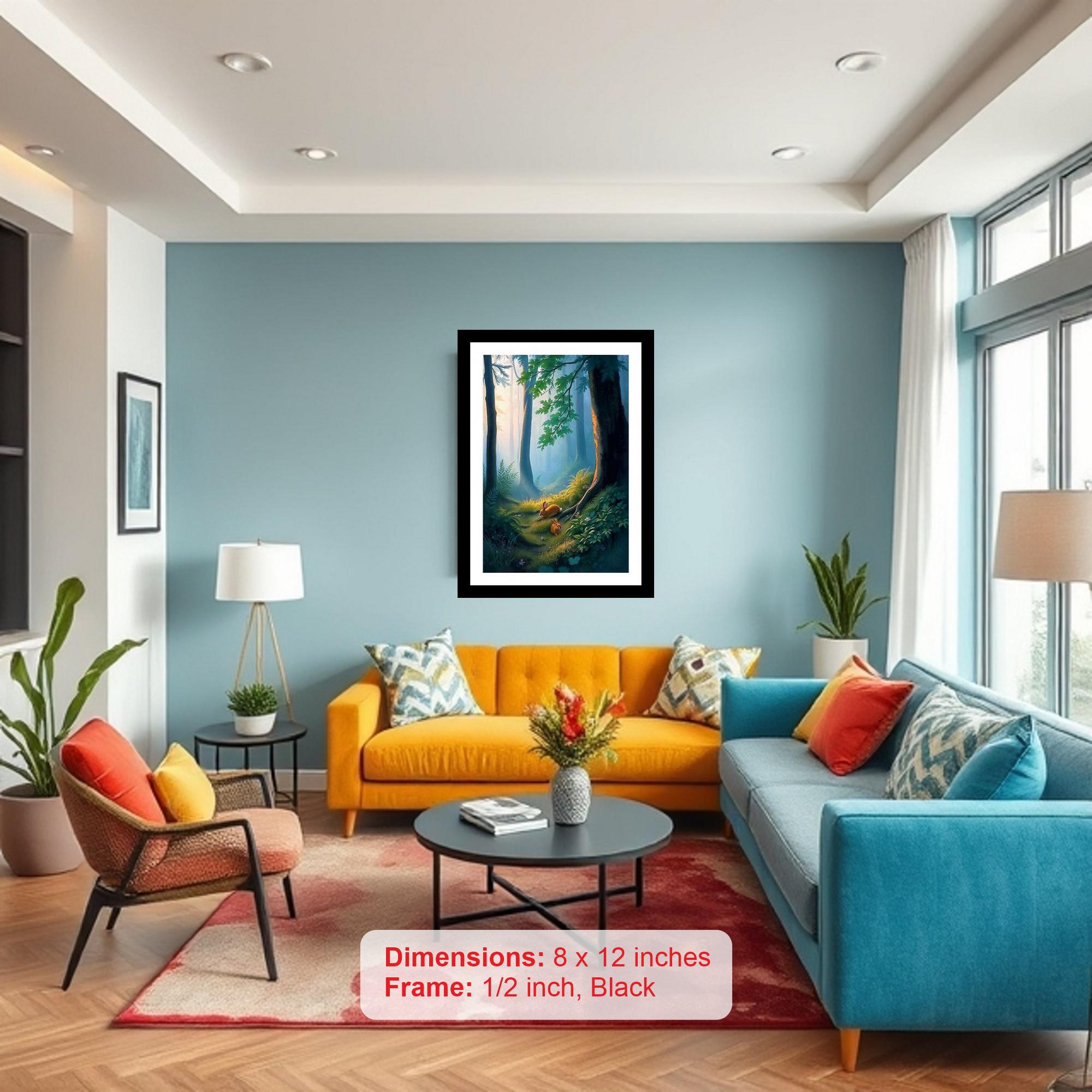 Escape to a lush paradise with our exquisitely framed digital reprint of a captivating jungle portrait. This stunning artwork transports you to a serene tropical haven, where dense emerald foliage intertwines with delicate tendrils of mist, creating an atmosphere of ethereal beauty. Observe closely and you'll discover the hidden wonders of the jungle floor: shy, adorable creatures peeking from behind vibrant leaves, adding a touch of whimsy and intrigue. Reproduced with meticulous attention to detail, this print captures the painterly nuances and vibrant colors of the original masterpiece, ensuring a breathtaking visual experience. The premium-quality frame complements the artwork perfectly, adding a touch of sophistication and making it ready to hang and enjoy right out of the box. Whether you're looking to add a touch of tranquility to your living room, create a soothing atmosphere in your bedroom, or infuse your office with a sense of natural beauty, this framed jungle portrait is the perfect choice. It's also a thoughtful and unique gift for nature lovers, art enthusiasts, or anyone who appreciates the beauty of the tropics. Bring the captivating allure of a misty jungle into your home and let this stunning artwork transform your space into a sanctuary of peace and tranquility.