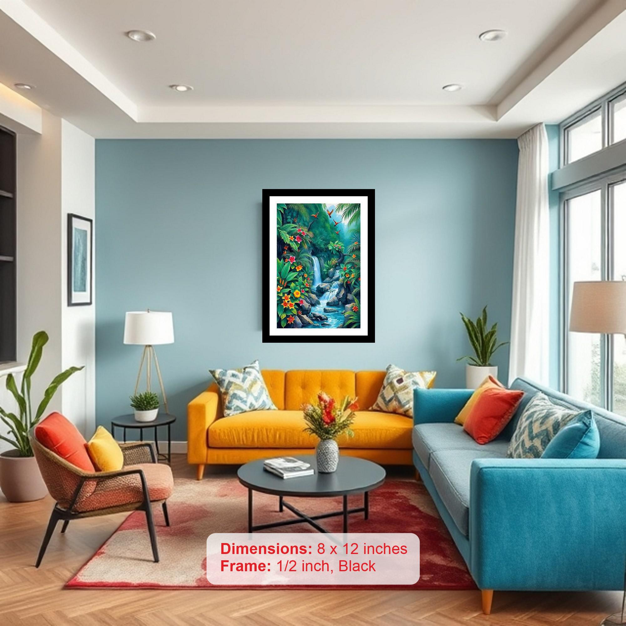 A stunning mountain forest painting bursting with vibrant greens, delicate flowers, and a pristine, flowing stream. The colors pop, the detail is sharp - a stunning digital reprint that truly brings the portrait to life! The reprint's striking composition breathes new life into the portrait, a testament to digital artistry. Versatile Decor: Ideal for enhancing the aesthetic appeal of living rooms and bedrooms Enhanced Durability: Weather-shield laminated digital print for lasting vibrancy and protection Premium Framing: Constructed with a high-quality, durable fiber frame for long-term stability Precise Dimensions: 30 cm x 20 cm x 1 cm