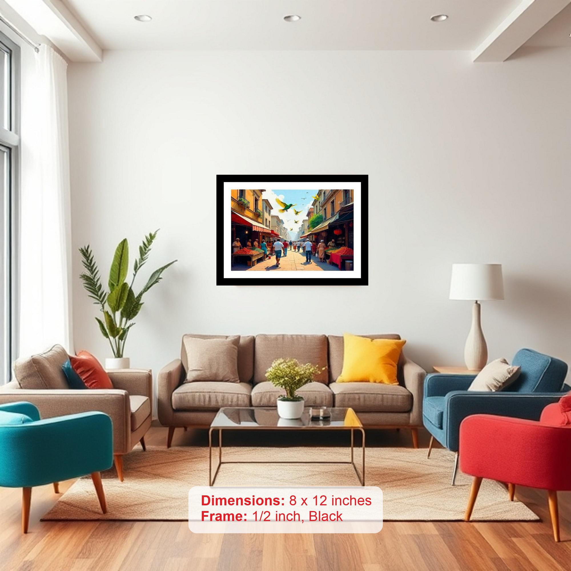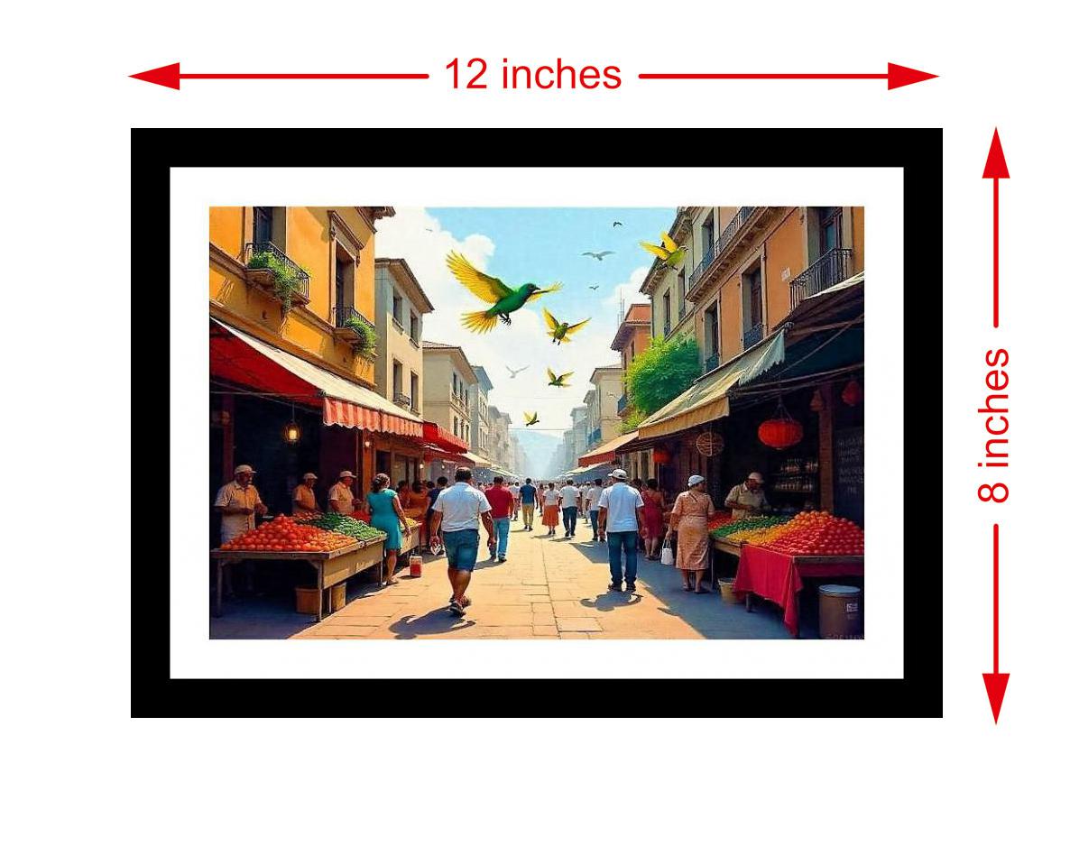 Vibrant artwork captures the lively energy of a city market overflowing with fresh produce and bustling vendors. The colors are vibrant, and the print captures every exquisite detail of the original portrait. The portrait's digital reprint boasts a striking composition; the artist's vision shines through anew. Versatile Decor: Ideal for enhancing the aesthetic appeal of living rooms and bedrooms Enhanced Durability: Weather-shield laminated digital print for lasting vibrancy and protection Premium Framing: Constructed with a high-quality, durable fiber frame for long-term stability Precise Dimensions: 30 cm x 20 cm x 1 cm