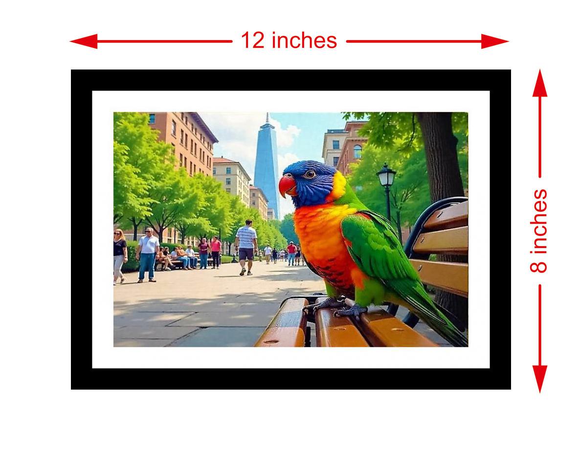 A vibrant city scene bursts with life, showcasing a colorful parrot amidst nature and urban energy. The reprint's vibrant colors and crisp print truly capture the portrait's original beauty and detail. The reprint's striking composition beautifully captures the portrait's essence, breathing new life into a timeless image. Versatile Decor: Ideal for enhancing the aesthetic appeal of living rooms and bedrooms Enhanced Durability: Weather-shield laminated digital print for lasting vibrancy and protection Premium Framing: Constructed with a high-quality, durable fiber frame for long-term stability Precise Dimensions: 30 cm x 20 cm x 1 cm