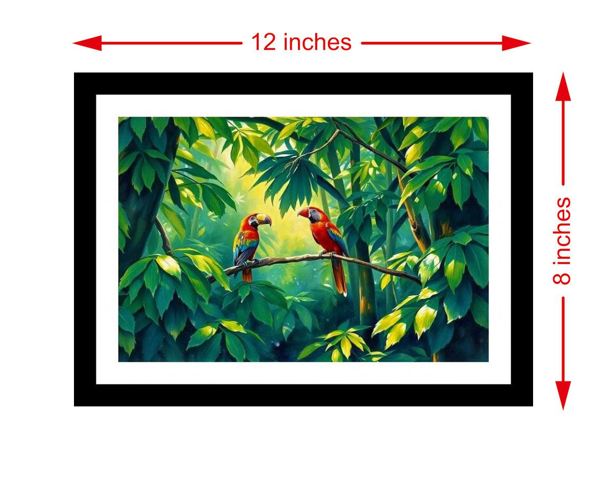 Vibrant parrots converse amidst lush jungle, a stunning display of color and life! The reprint's colors pop and the print is crisp, truly capturing the portrait's original beauty. The digital reprint boasts a strikingly composed portrait, breathing new life into a timeless masterpiece. Versatile Decor: Ideal for enhancing the aesthetic appeal of living rooms and bedrooms Enhanced Durability: Weather-shield laminated digital print for lasting vibrancy and protection Premium Framing: Constructed with a high-quality, durable fiber frame for long-term stability Precise Dimensions: 30 cm x 20 cm x 1 cm
