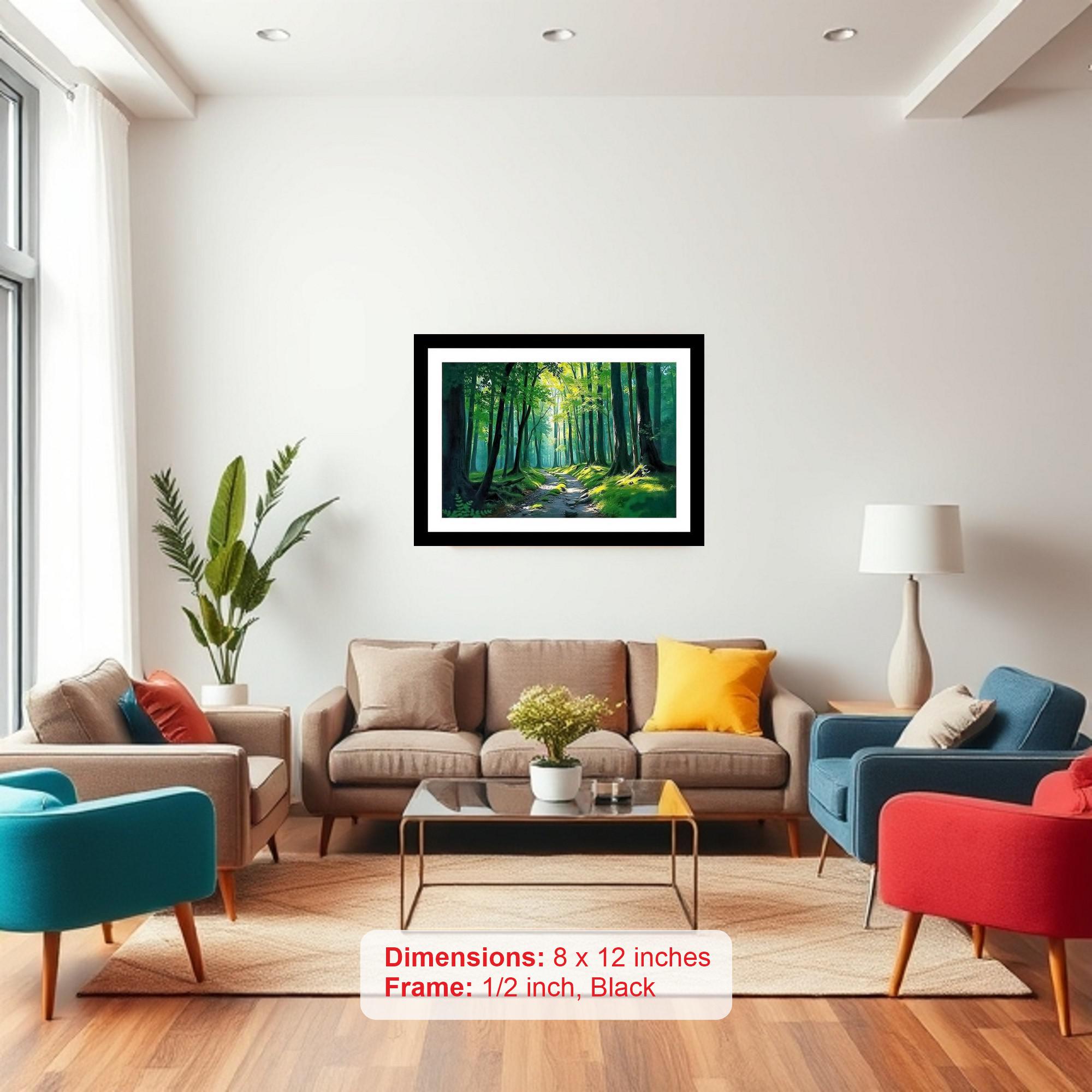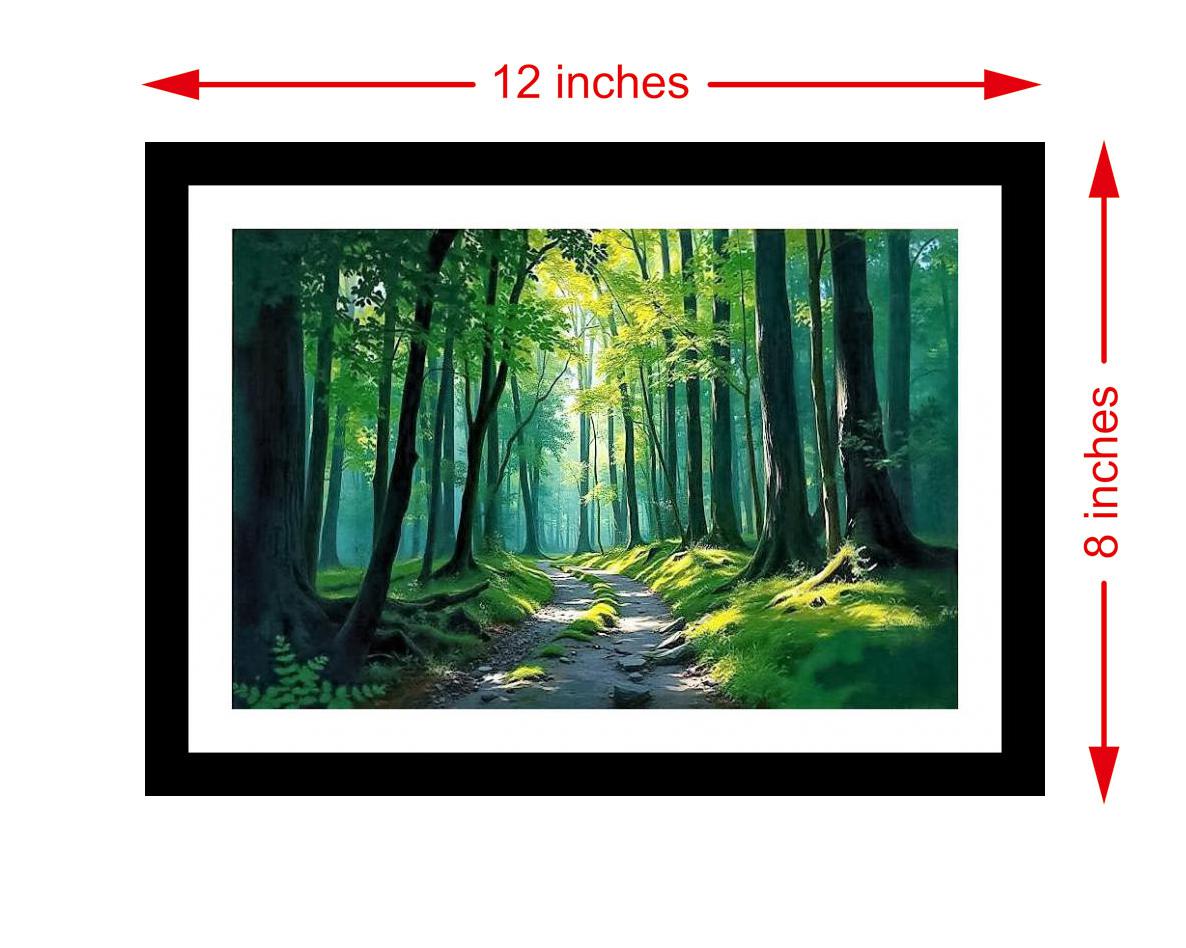 The artwork beautifully captures the serene essence of a lush, sun-drenched forest with mossy trees and a beckoning path. Colors are vibrant and the print is so crisp, it brings the portrait to life. The digital reprint boasts a striking composition, expertly capturing the portrait's original beauty. Versatile Decor: Ideal for enhancing the aesthetic appeal of living rooms and bedrooms Enhanced Durability: Weather-shield laminated digital print for lasting vibrancy and protection Premium Framing: Constructed with a high-quality, durable fiber frame for long-term stability Precise Dimensions: 30 cm x 20 cm x 1 cm