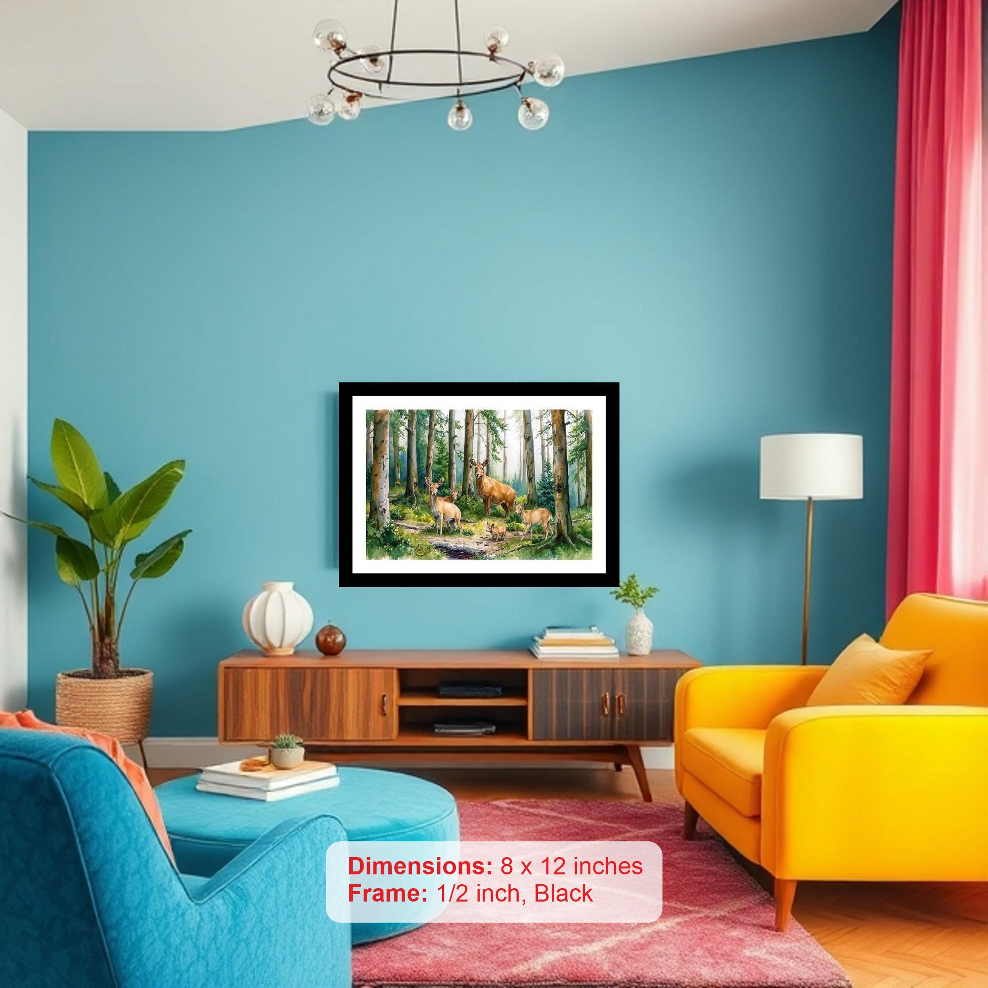 Elevate your home decor with this timeless and elegant digital reprint of a captivating portrait, framed in a classic black finish. This stunning artwork depicts a serene scene of a herd of deer gracefully posed against the backdrop of a lush and dense tropical forest. The intricate details of the deer's antlers and their gentle expressions are beautifully rendered, creating a sense of tranquility and connection to nature. The rich, vibrant greens and browns of the tropical foliage provide a captivating contrast to the deer's subtle coloration, drawing the viewer into the heart of the wilderness. The classic black frame adds a touch of sophistication and complements the artwork perfectly, making it a versatile piece that will seamlessly integrate into any living room, bedroom, office, or hallway. This high-quality digital reprint captures the essence of the original artwork with exceptional clarity and color accuracy, ensuring that you can enjoy its beauty for years to come. Whether you're a nature enthusiast, an art lover, or simply seeking to add a touch of elegance to your home, this framed portrait is a perfect choice. It also makes a thoughtful and memorable gift for birthdays, holidays, or housewarmings. Bring the beauty of the wild indoors and create a serene and inviting atmosphere with this exquisite piece of art.