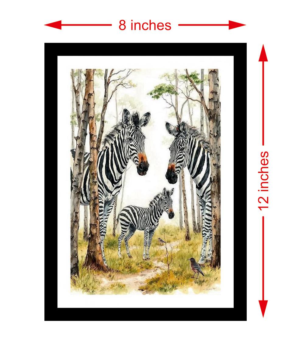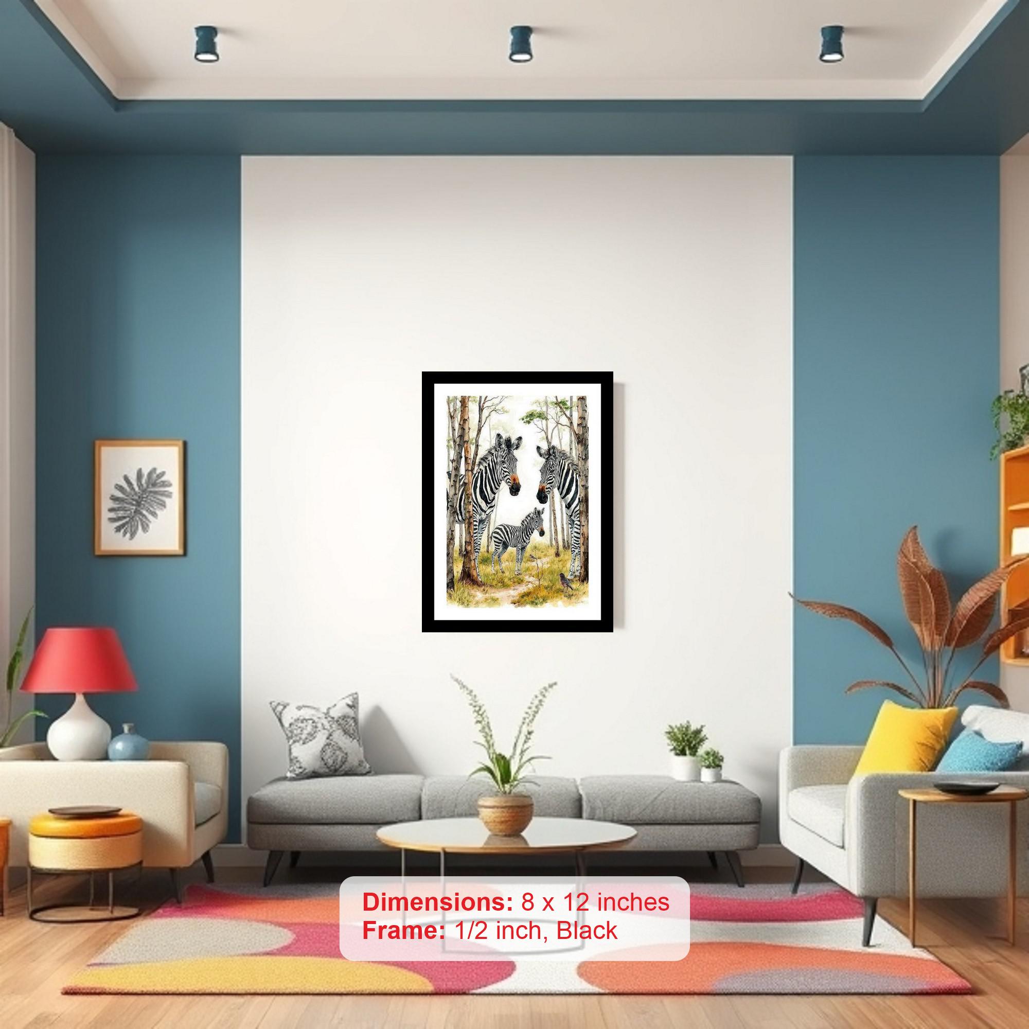 Zebra Herd Portrait in Lush Forest - Stunning Wall Art. Photo Frame With Photo, Wall Hanging Art, Wall Decor, Home Decor, Picture Frame | Size: 8 x 12 inches