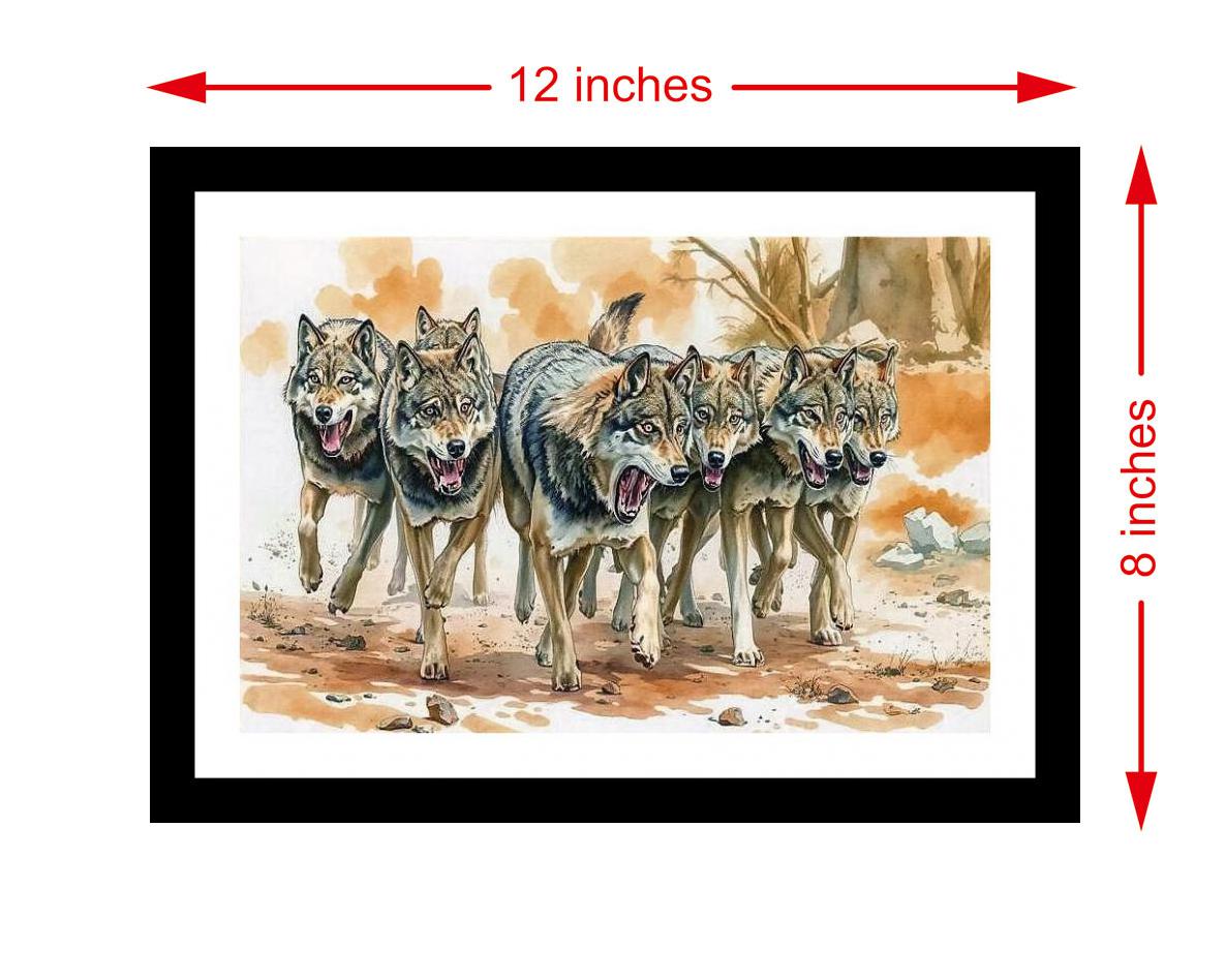 Fierce wolves rage in a lush forest; a powerful, evocative display of primal aggression and raw beauty. Colors are vibrant, print is crisp, and the portrait's beauty shines through. The digital reprint boasts a striking composition, faithfully capturing the portrait's original beauty. Versatile Decor: Ideal for enhancing the aesthetic appeal of living rooms and bedrooms Enhanced Durability: Weather-shield laminated digital print for lasting vibrancy and protection Premium Framing: Constructed with a high-quality, durable fiber frame for long-term stability Precise Dimensions: 30 cm x 20 cm x 1 cm