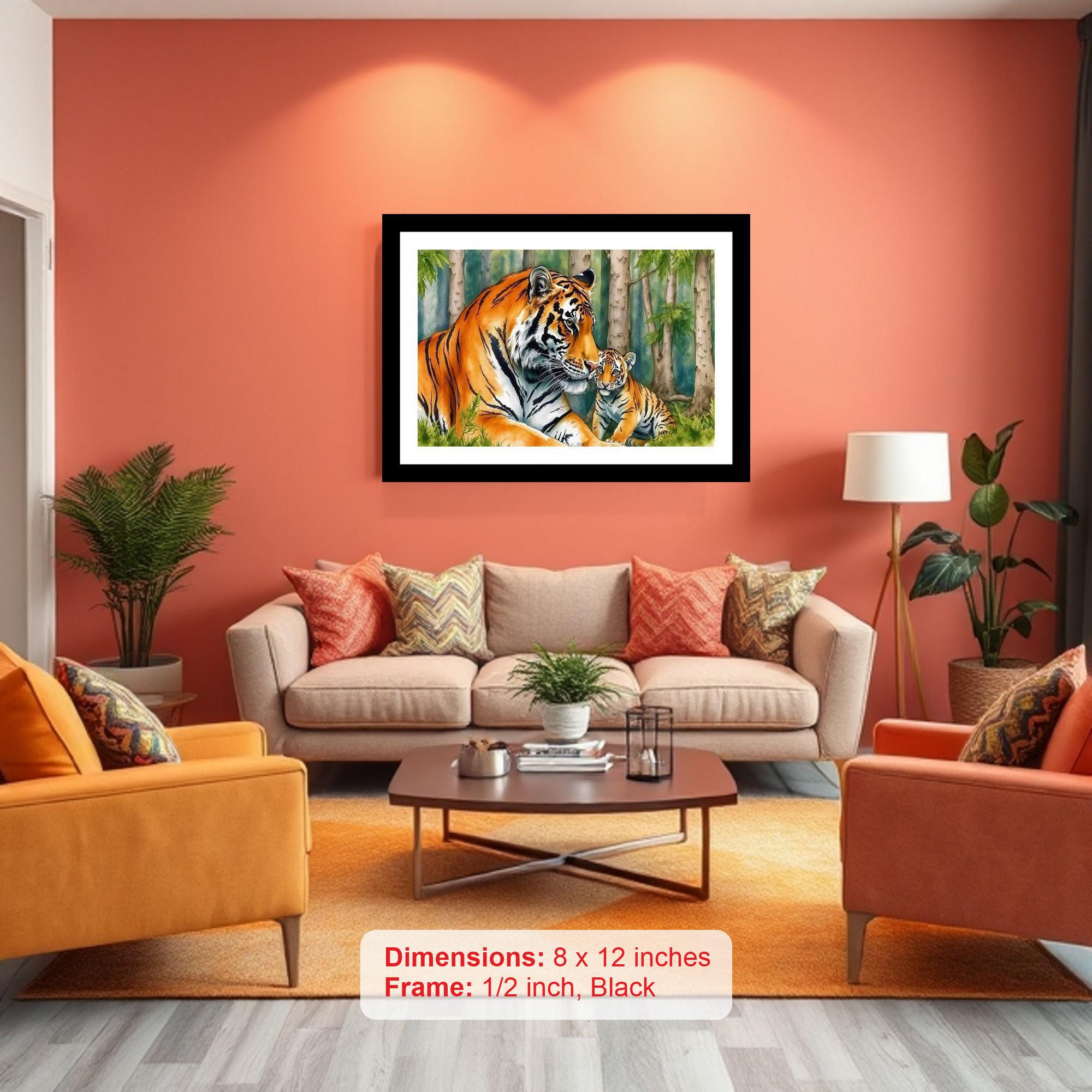 Tigress & Cub Portrait - Tropical Forest Charm. Photo Frame With Photo, Wall Hanging Art, Wall Decor, Home Decor, Picture Frame | Size: 8 x 12 inches