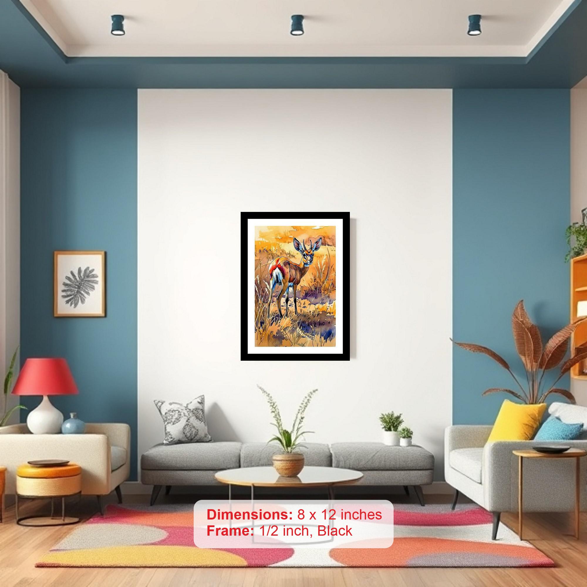Sun-drenched savanna meets graceful springbok in a stunning, evocative artwork. Colors are vibrant, print is crisp, and the portrait's beauty shines through. A true treasure. The digital reprint boasts a striking composition, flawlessly capturing the portrait's beauty. Versatile Decor: Ideal for enhancing the aesthetic appeal of living rooms and bedrooms Enhanced Durability: Weather-shield laminated digital print for lasting vibrancy and protection Premium Framing: Constructed with a high-quality, durable fiber frame for long-term stability Precise Dimensions: 30 cm x 20 cm x 1 cm