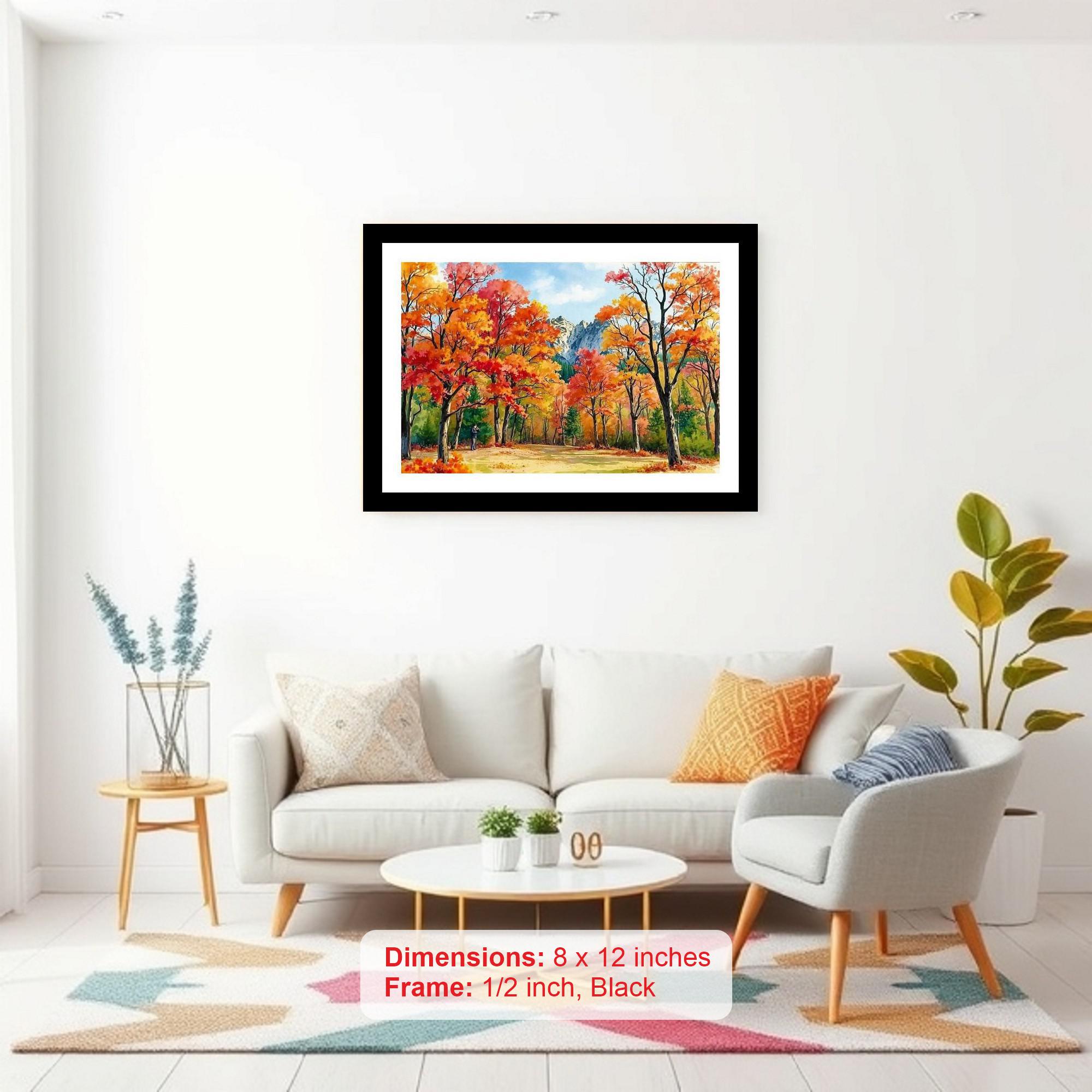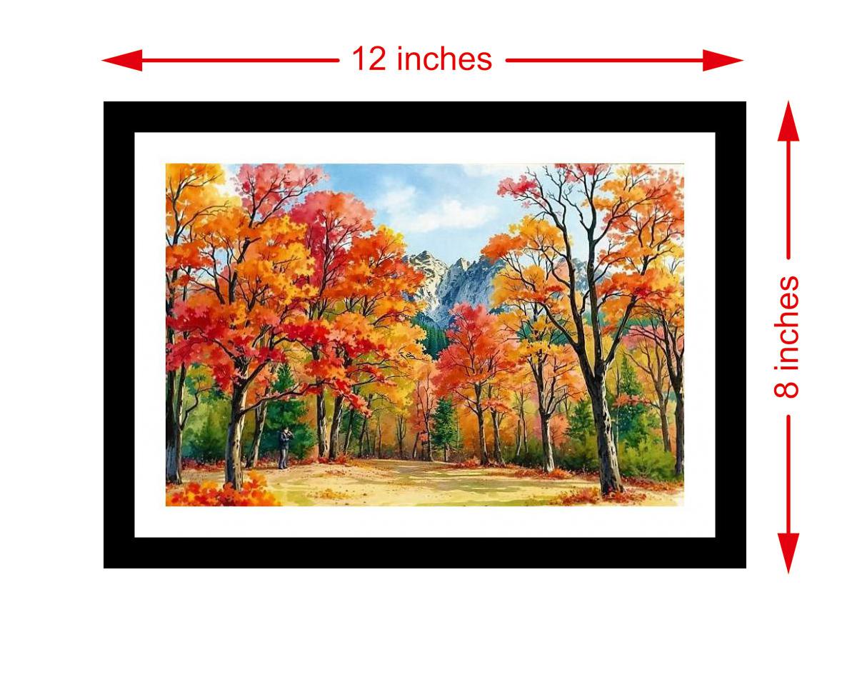 A solitary figure finds awe and beauty amidst vibrant fall foliage and majestic mountains. The reprint's colors sing and the print is crisp - the portrait's beauty shines anew! The portrait's digital reprint boasts striking composition, breathing new life into the original's beauty. Versatile Decor: Ideal for enhancing the aesthetic appeal of living rooms and bedrooms Enhanced Durability: Weather-shield laminated digital print for lasting vibrancy and protection Premium Framing: Constructed with a high-quality, durable fiber frame for long-term stability Precise Dimensions: 30 cm x 20 cm x 1 cm