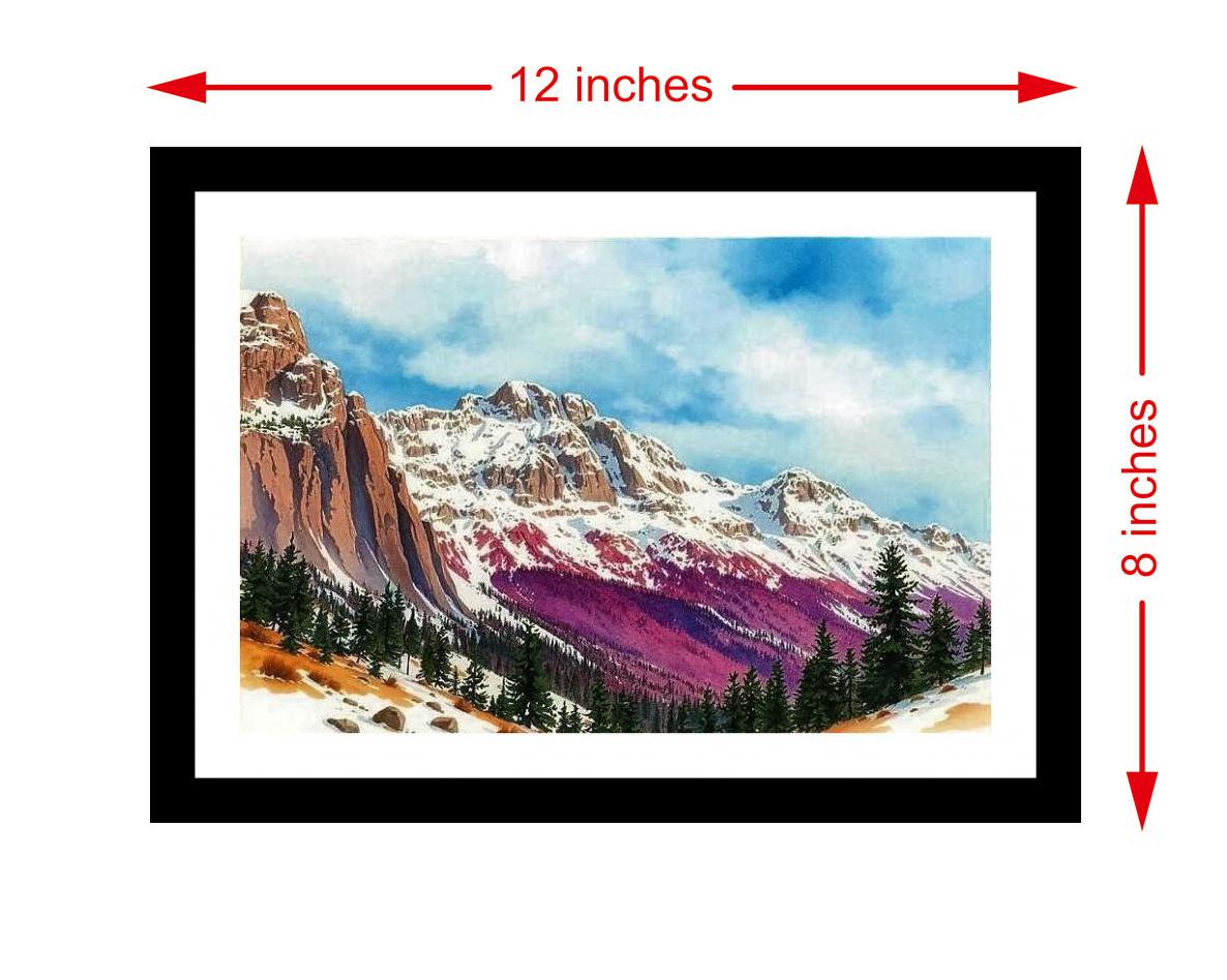 A vibrant sky crowns majestic, evergreen-dotted snow-capped mountains, a breathtaking masterpiece of natural beauty. The colors burst, the details sing! A vibrant and faithful reprint that truly honors the original portrait. The digital reprint boasts a striking composition, breathing new life into the portrait's timeless beauty. Versatile Decor: Ideal for enhancing the aesthetic appeal of living rooms and bedrooms Enhanced Durability: Weather-shield laminated digital print for lasting vibrancy and protection Premium Framing: Constructed with a high-quality, durable fiber frame for long-term stability Precise Dimensions: 30 cm x 20 cm x 1 cm