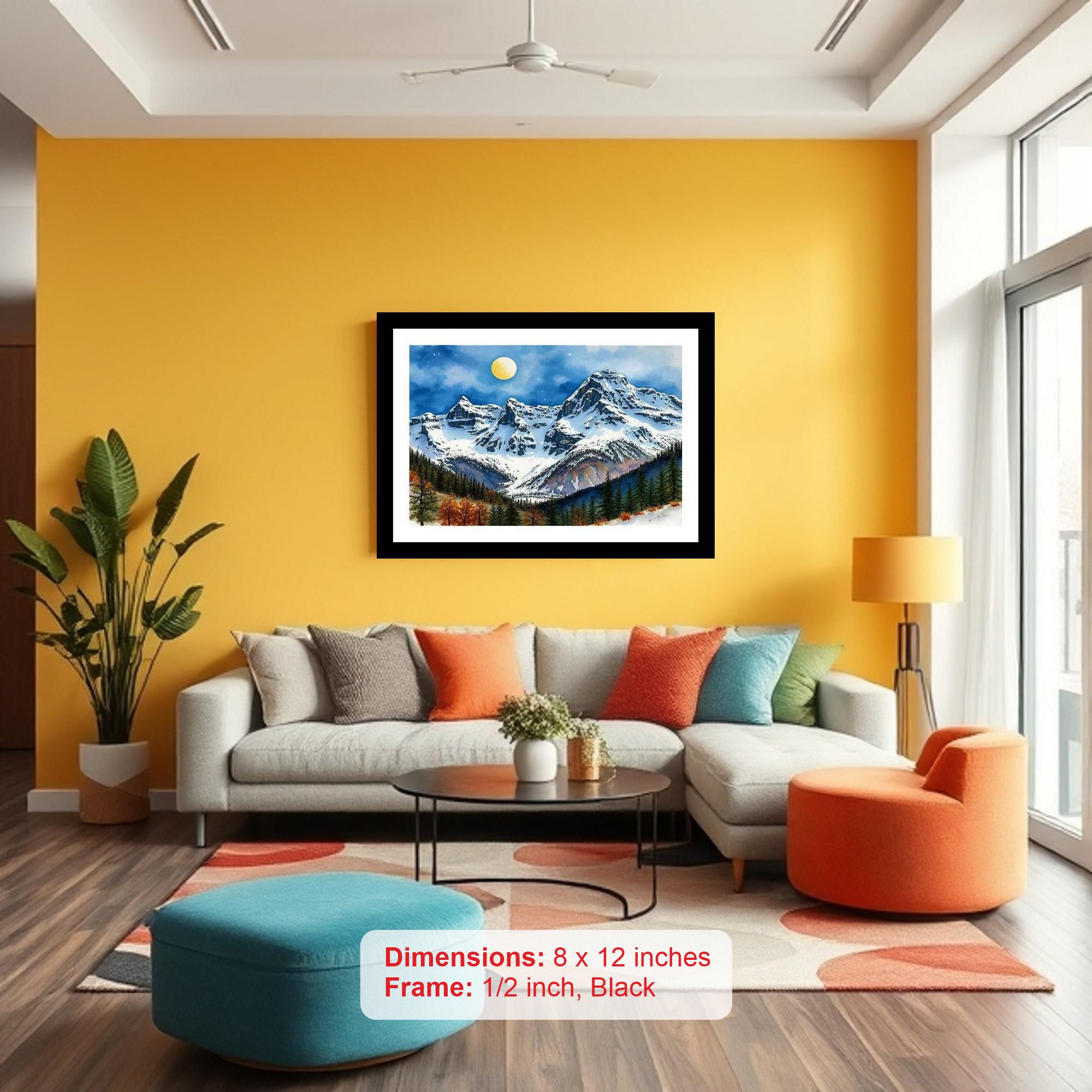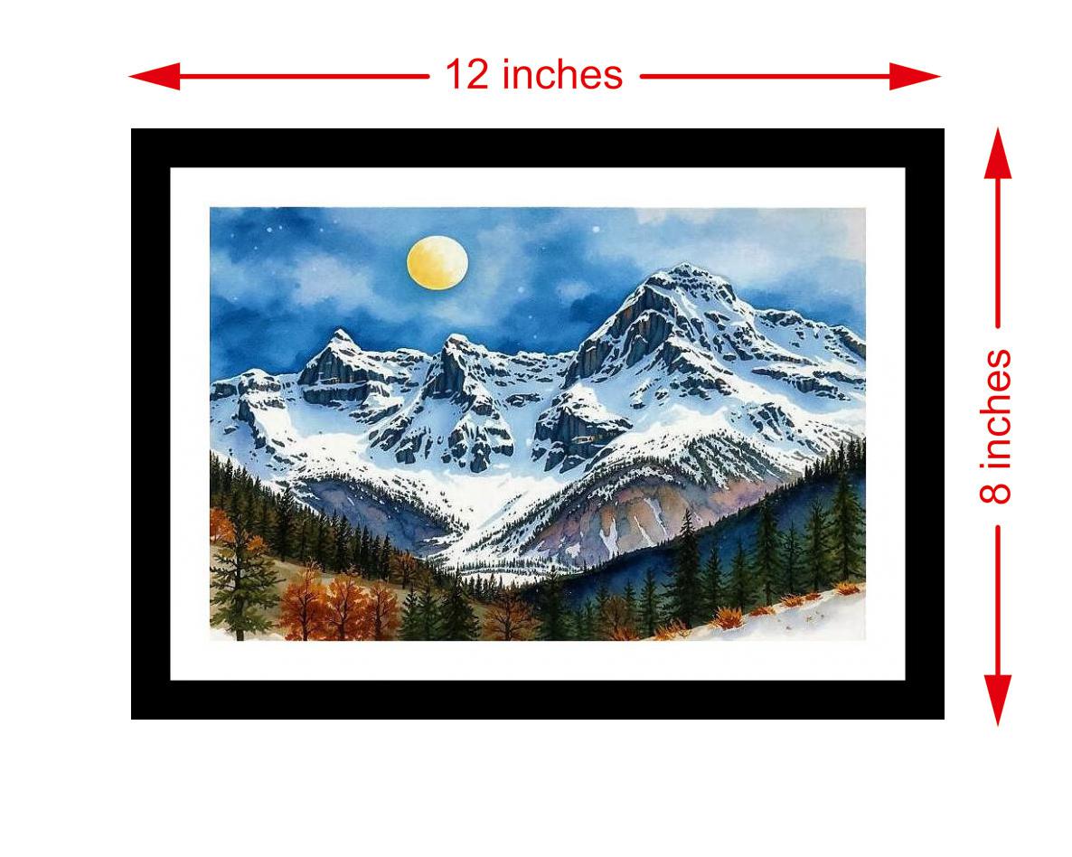 Moonlit Mountain Majesty: Breathtaking Winter Landscape Portrait. Photo Frame With Photo, Wall Hanging Art, Wall Decor, Home Decor, Picture Frame | Size: 8 x 12 inches