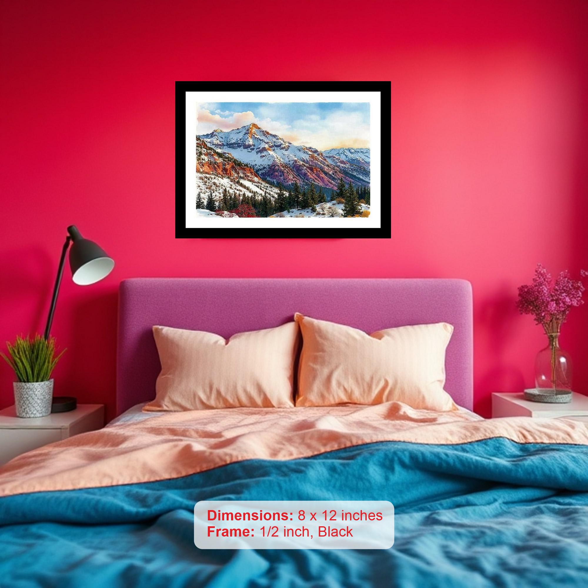 The pastel sky beautifully illuminates the majestic, snow-capped mountains, creating a breathtaking and serene scene. The colors pop, and the print captures every delicate detail of the original portrait. The digital reprint captures the portrait's essence perfectly, with striking composition and masterful detail. Versatile Decor: Ideal for enhancing the aesthetic appeal of living rooms and bedrooms Enhanced Durability: Weather-shield laminated digital print for lasting vibrancy and protection Premium Framing: Constructed with a high-quality, durable fiber frame for long-term stability Precise Dimensions: 30 cm x 20 cm x 1 cm