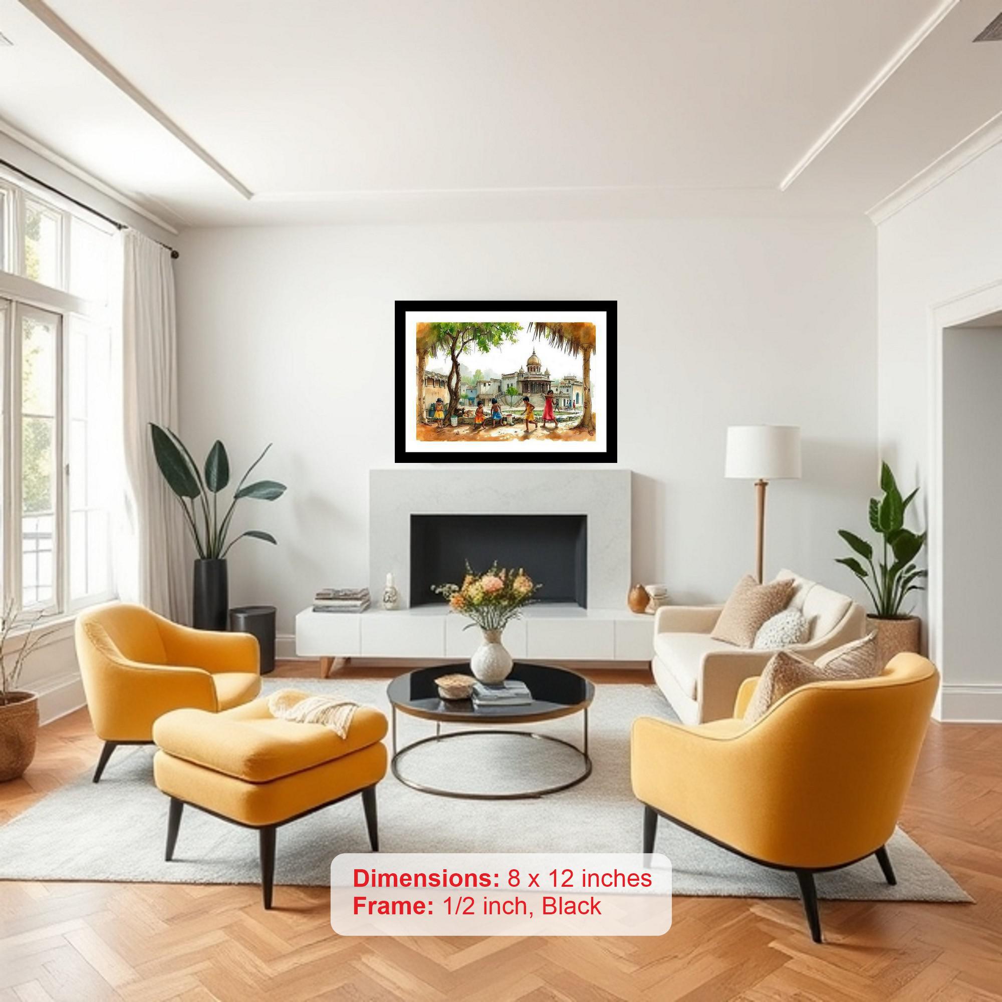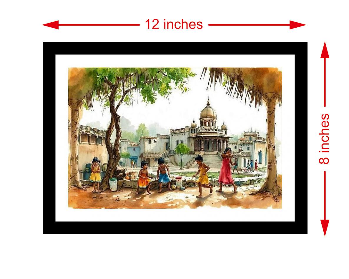 A vibrant scene captures joyful children playing by a grand building, shaded by a tree in a lively village. The colors pop with life, and the print captures every delicate detail of the original portrait. The digital reprint boasts a striking composition, breathing new life into the portrait's timeless beauty. Versatile Decor: Ideal for enhancing the aesthetic appeal of living rooms and bedrooms Enhanced Durability: Weather-shield laminated digital print for lasting vibrancy and protection Premium Framing: Constructed with a high-quality, durable fiber frame for long-term stability Precise Dimensions: 30 cm x 20 cm x 1 cm