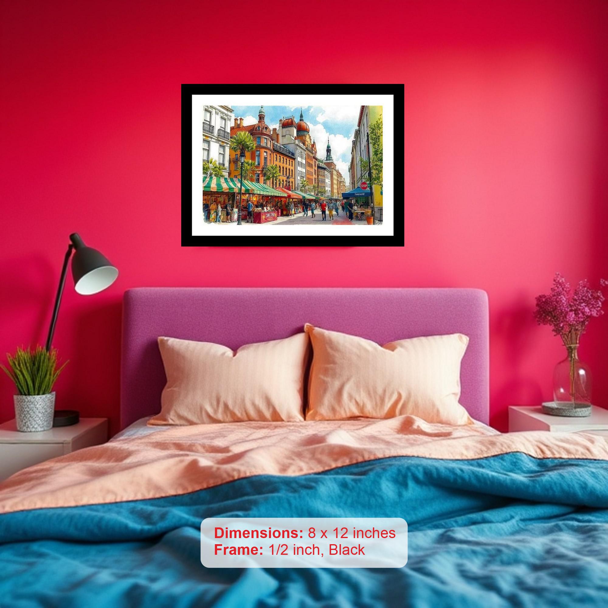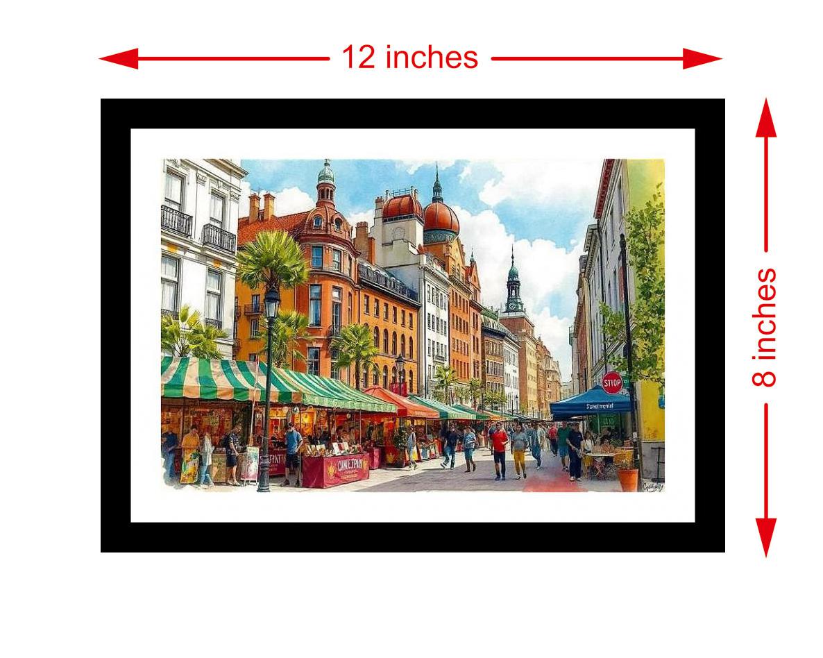 Vibrant street market under European charm bursts with sunny, bustling life. A feast for the eyes! Colors are vibrant, print is sharp, capturing the portrait's beauty perfectly. The digital reprint's striking composition truly captures the portrait's beauty, a testament to artistry. Versatile Decor: Ideal for enhancing the aesthetic appeal of living rooms and bedrooms Enhanced Durability: Weather-shield laminated digital print for lasting vibrancy and protection Premium Framing: Constructed with a high-quality, durable fiber frame for long-term stability Precise Dimensions: 30 cm x 20 cm x 1 cm