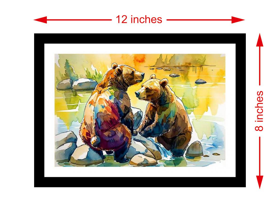 A peaceful masterpiece! Two grizzlies find serenity by a stream, beautifully capturing nature's tranquility. The reprint's colors are vibrant, and the print captures the portrait's detail beautifully - a stunning recreation! The digital reprint boasts a strikingly balanced composition, breathing new life into the portrait's timeless beauty. Versatile Decor: Ideal for enhancing the aesthetic appeal of living rooms and bedrooms Enhanced Durability: Weather-shield laminated digital print for lasting vibrancy and protection Premium Framing: Constructed with a high-quality, durable fiber frame for long-term stability Precise Dimensions: 30 cm x 20 cm x 1 cm