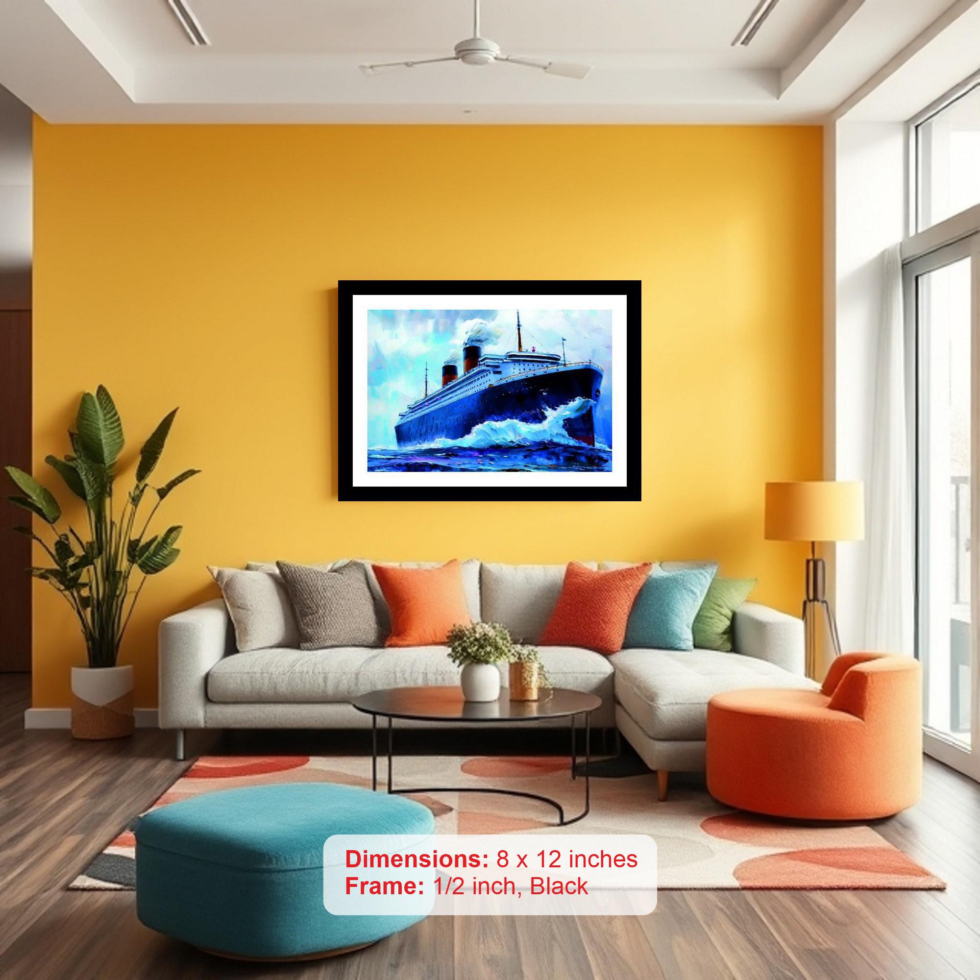 A stunning nautical artwork: Majestic liner conquers the waves, a true masterpiece! The reprint's colors pop with vibrancy, capturing every delicate detail of the portrait beautifully. Excellent print quality! The digital reprint boasts a striking composition, breathing new life into the portrait's exquisite beauty. Versatile Decor: Ideal for enhancing the aesthetic appeal of living rooms and bedrooms Enhanced Durability: Weather-shield laminated digital print for lasting vibrancy and protection Premium Framing: Constructed with a high-quality, durable fiber frame for long-term stability Precise Dimensions: 30 cm x 20 cm x 1 cm