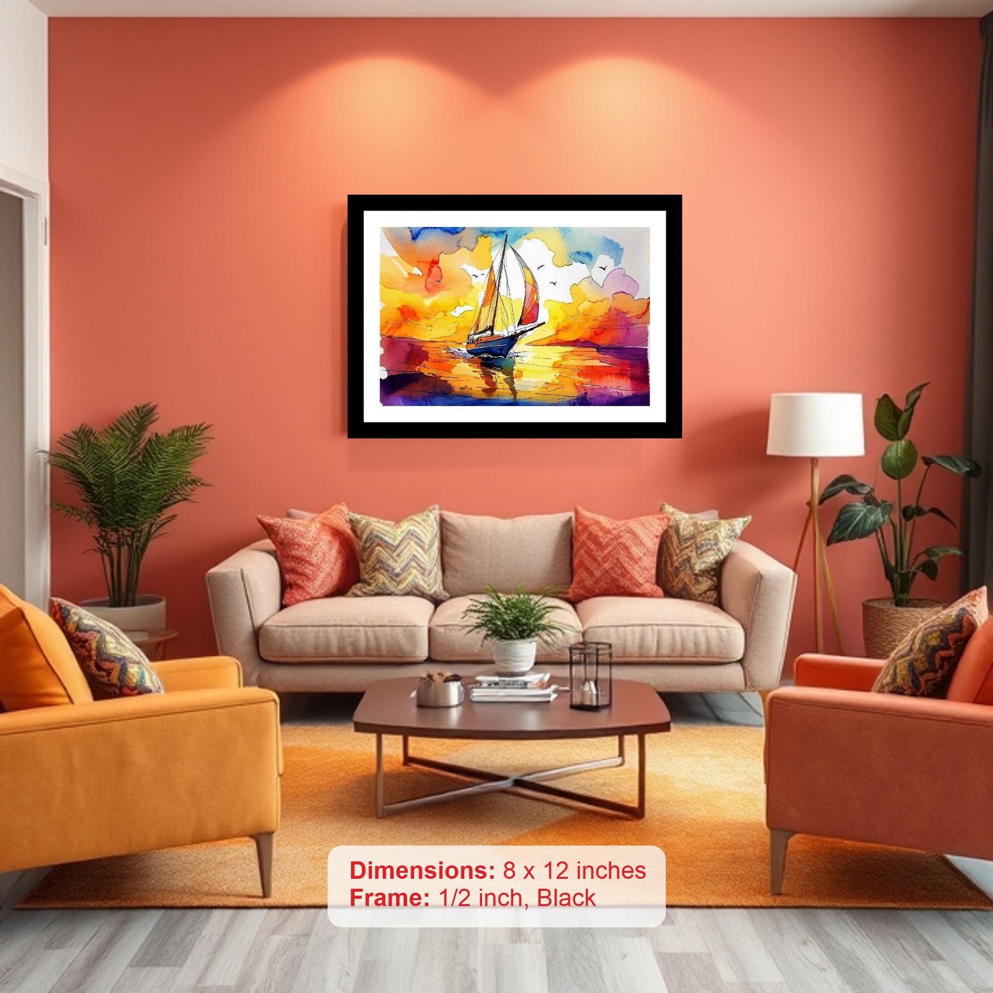 Sunset Sailboat Portrait: Vibrant Sea Art. Wall Art, Interior Accents, Framing Solutions, Residential/Commercial Decor, Premium Gifts | Size: 8 x 12 inches