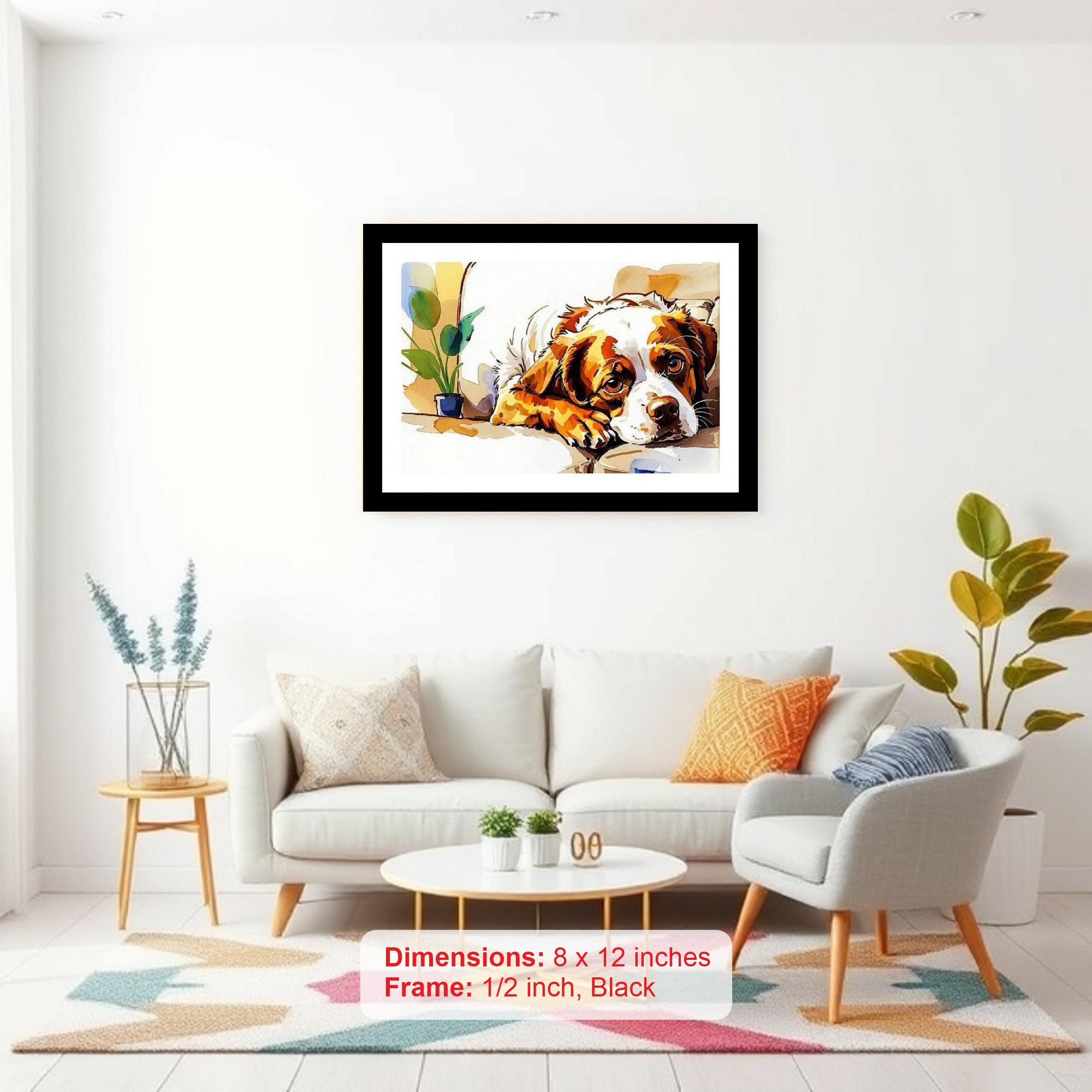 Brittany Spaniel Portrait - Soulful Eyes, Cozy Scene. Wall Art, Interior Accents, Framing Solutions, Residential/Commercial Decor, Premium Gifts | Size: 8 x 12 inches
