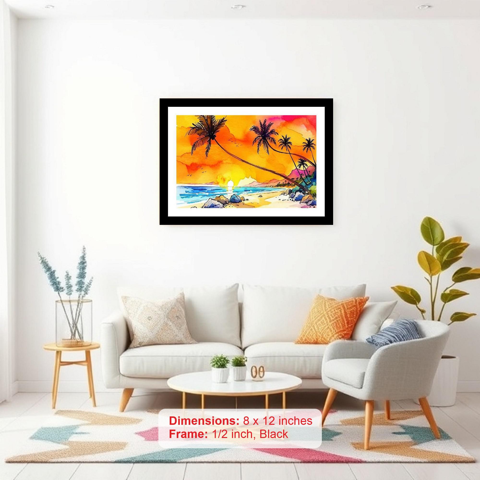 The vibrant sunset paints a tranquil beach paradise, creating a stunningly beautiful artwork. The reprint's colors are vibrant & true, the print's clarity brings this beautiful portrait to life! The reprint's composition is stunning! Colors pop, and the subject's presence is captivating. A masterful digital revival. Versatile Decor: Ideal for enhancing the aesthetic appeal of living rooms and bedrooms Enhanced Durability: Weather-shield laminated digital print for lasting vibrancy and protection Premium Framing: Constructed with a high-quality, durable fiber frame for long-term stability Precise Dimensions: 30 cm x 20 cm x 1 cm