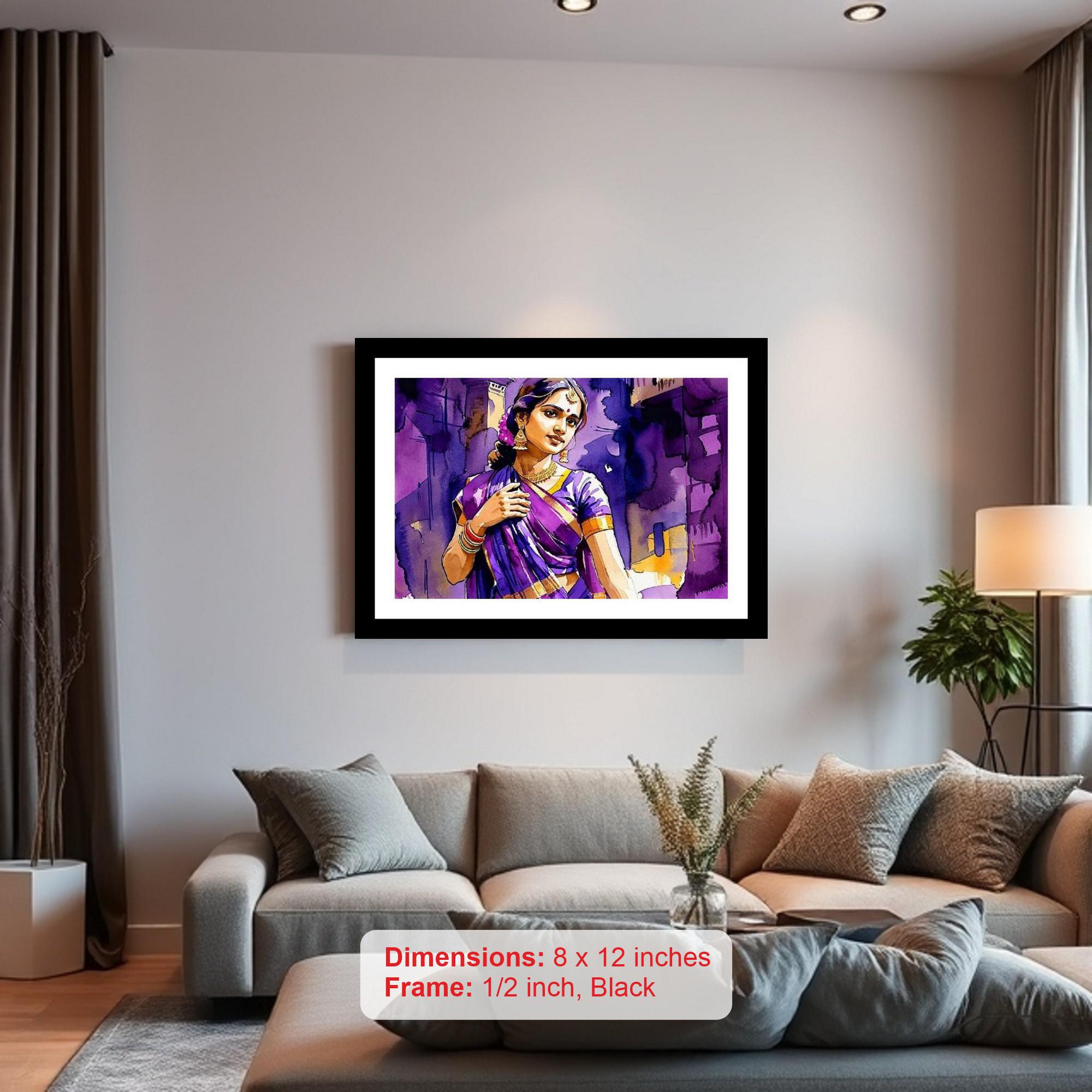 A vibrant, regal woman in purple shines against a rich, urban canvas - stunning! The colors burst, the details sing! A stunning reprint that truly captures the portrait's original beauty. The portrait's digital reprint boasts a striking composition, expertly highlighting its original beauty and depth. Versatile Decor: Ideal for enhancing the aesthetic appeal of living rooms and bedrooms Enhanced Durability: Weather-shield laminated digital print for lasting vibrancy and protection Premium Framing: Constructed with a high-quality, durable fiber frame for long-term stability Precise Dimensions: 30 cm x 20 cm x 1 cm