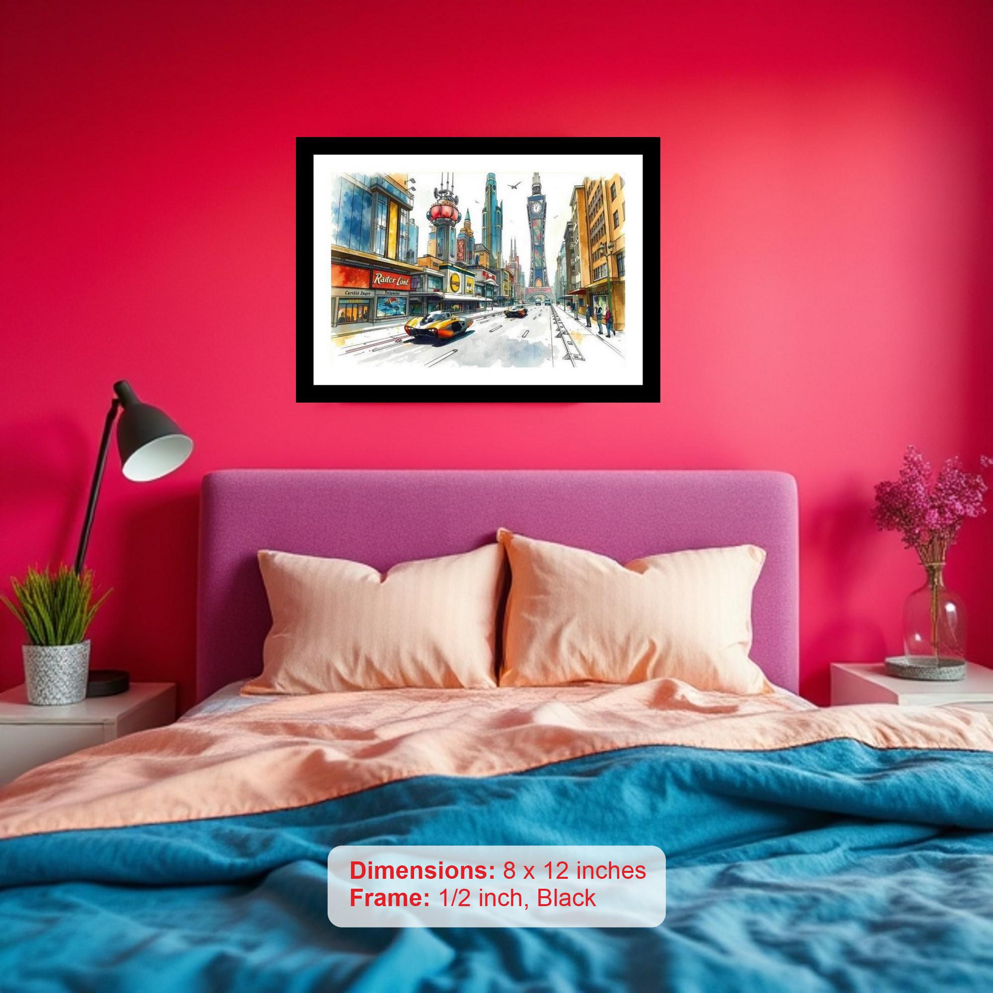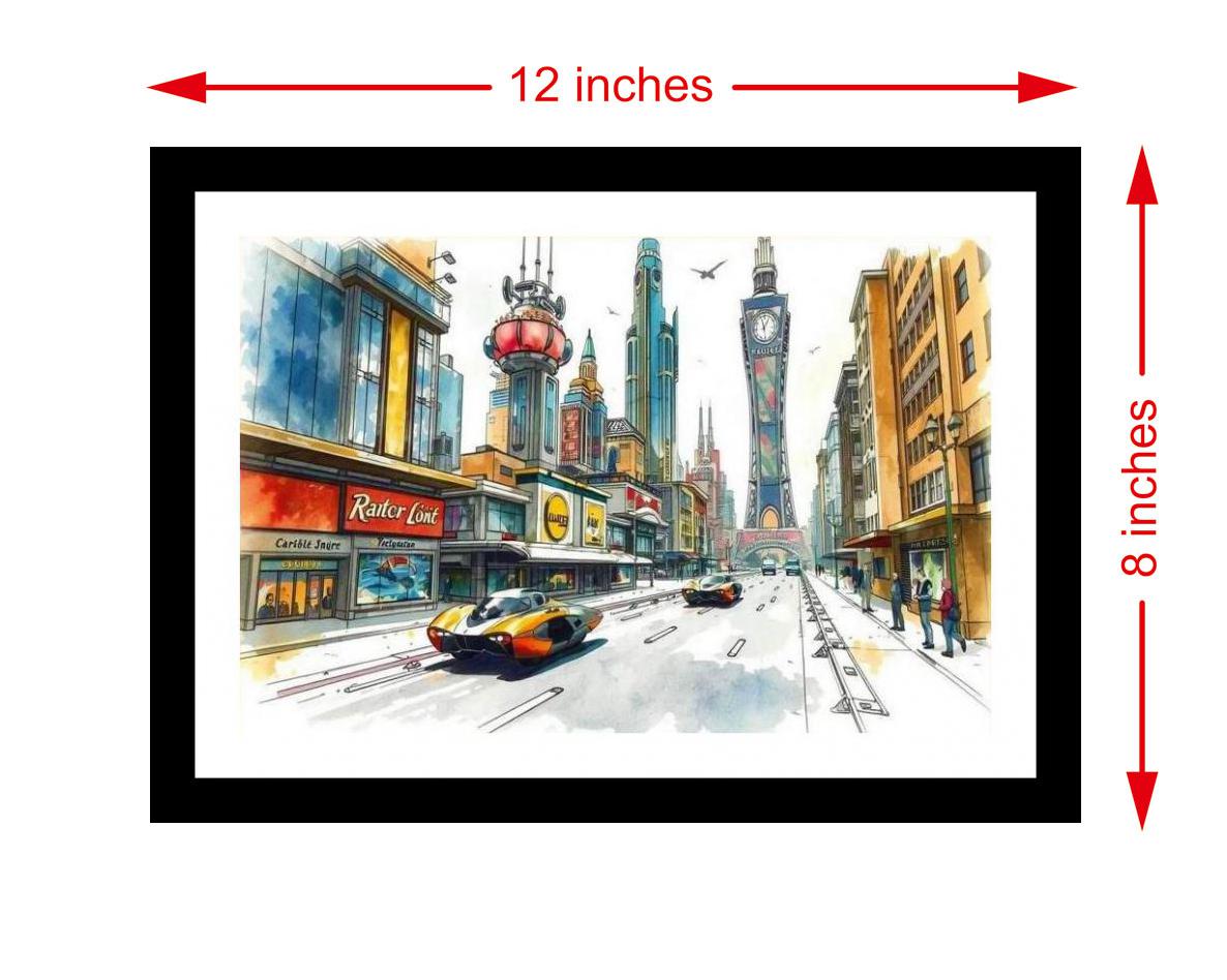 Vibrant Lane Amidst Skyscrapers and a Timeless Clock, Photo Frame With Photo, Wall Hanging Art, Wall Decor, Home Decor, Picture Frame | Size: 8 x 12 inches