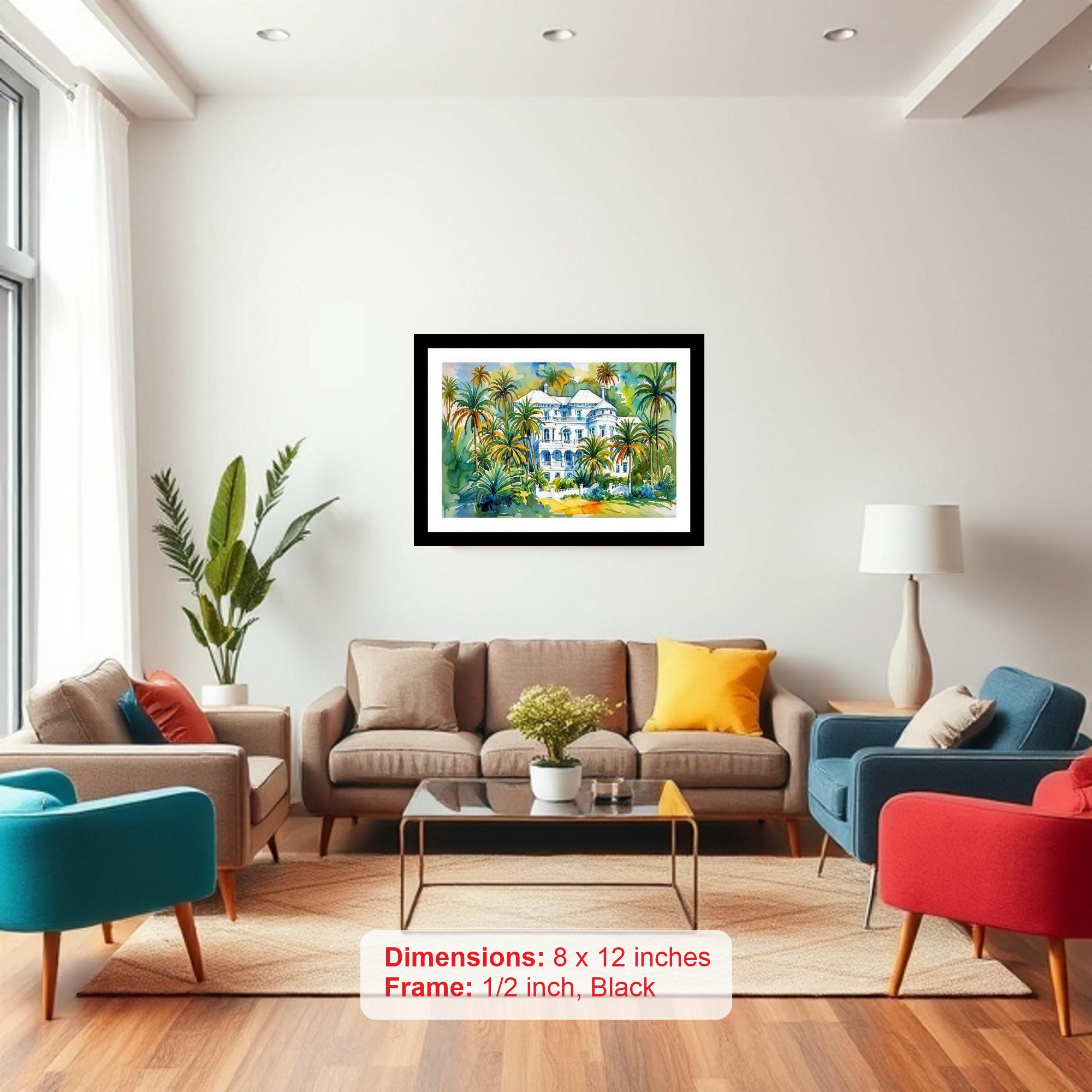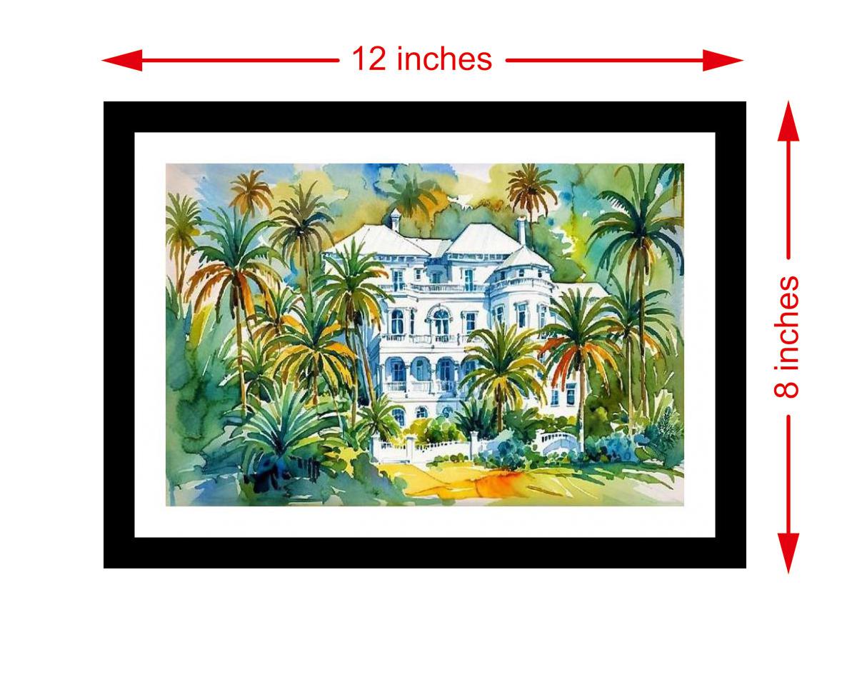 Lush palms frame a grand white mansion, a tropical dream captured beautifully in a serene, captivating artwork. The colors are vibrant, the details are crisp - a stunning digital reprint that truly captures the original portrait's beauty. The digital reprint captures the portrait's beauty perfectly! Striking composition and detail shine through. Versatile Decor: Ideal for enhancing the aesthetic appeal of living rooms and bedrooms Enhanced Durability: Weather-shield laminated digital print for lasting vibrancy and protection Premium Framing: Constructed with a high-quality, durable fiber frame for long-term stability Precise Dimensions: 30 cm x 20 cm x 1 cm