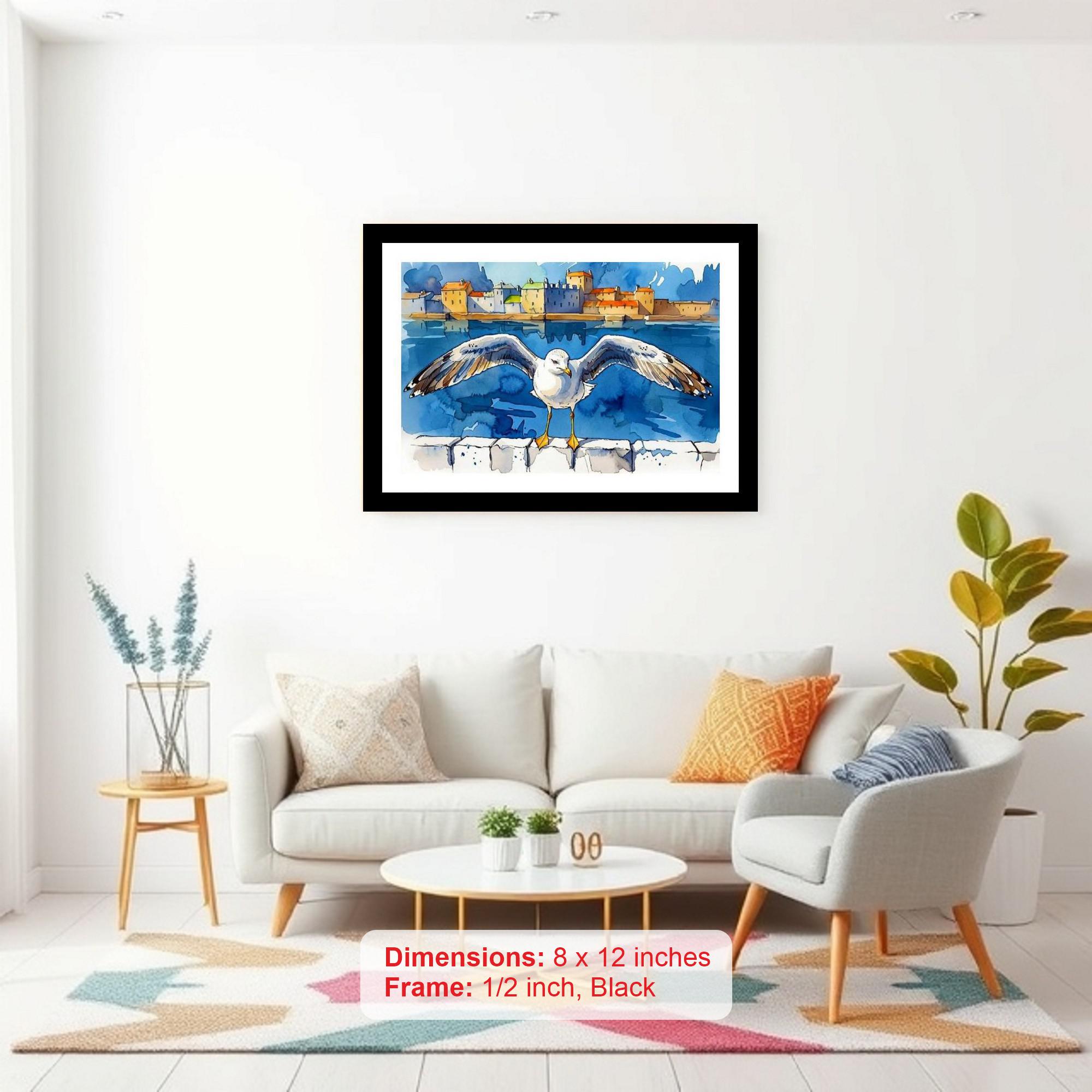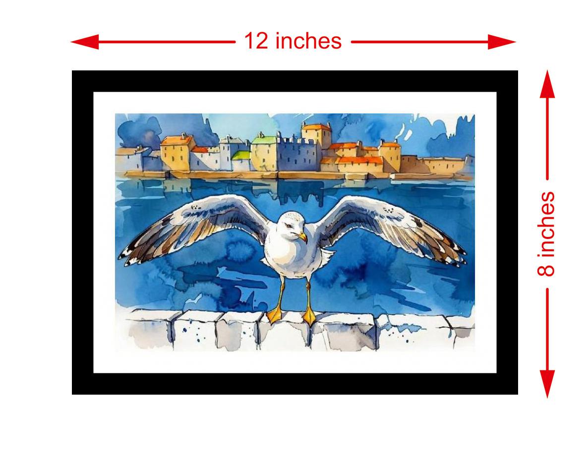 Soaring seagull art: Wings embrace the scenic waterfront town, a perfect coastal tableau. The reprint bursts with vibrant color and captures every delicate detail of the original portrait beautifully. The reprint's composition is stunning! The artist's vision shines anew with impressive clarity. Versatile Decor: Ideal for enhancing the aesthetic appeal of living rooms and bedrooms Enhanced Durability: Weather-shield laminated digital print for lasting vibrancy and protection Premium Framing: Constructed with a high-quality, durable fiber frame for long-term stability Precise Dimensions: 30 cm x 20 cm x 1 cm