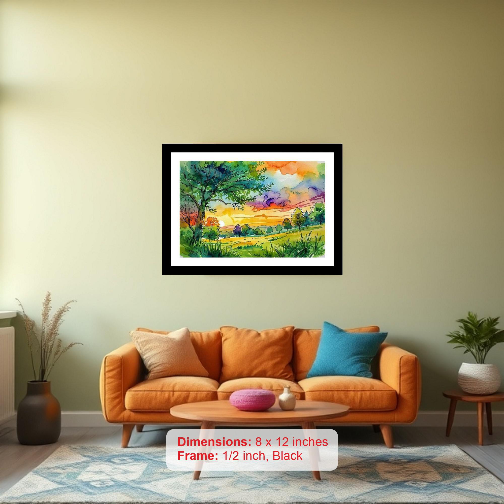 Immerse yourself in the captivating allure of yesteryear with our vintage-inspired digital reprint, elegantly framed in a stunning black hue. This exquisite piece transports you to a serene landscape where a vibrant sunset explodes across the sky, painting it with fiery shades of orange, red, and gold. The silhouette of trees stand in stark contrast to this radiant backdrop, creating a breathtaking visual harmony. The black frame enhances the artwork's classic appeal, adding a touch of timeless sophistication to any room. Perfect for adding a focal point to your living room, bedroom, or office, this portrait evokes a sense of peace and tranquility, inviting you to lose yourself in its beauty. Its vintage aesthetic blends seamlessly with both modern and traditional decor, offering a versatile and stylish addition to your art collection.