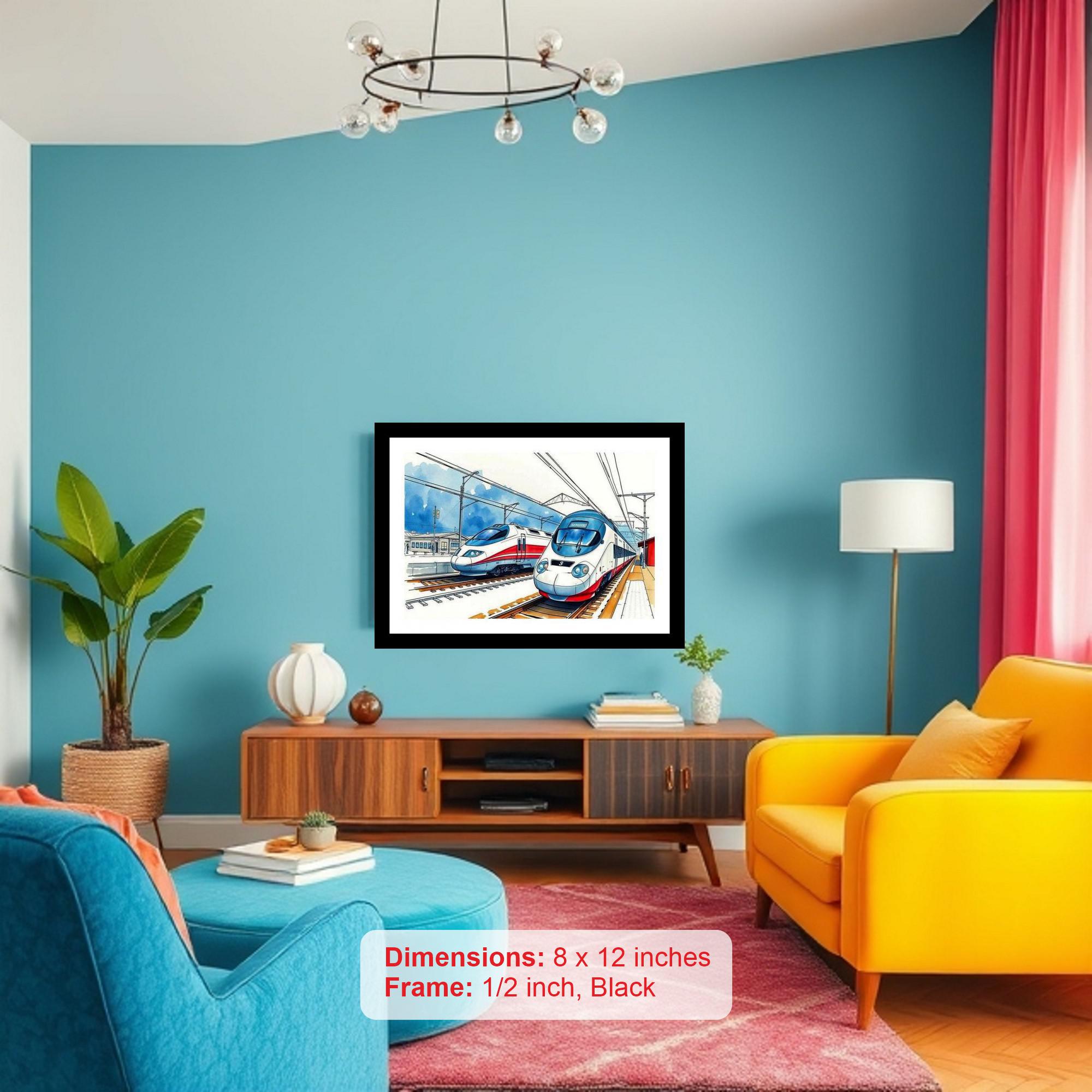 The artwork beautifully captures the speed & modernity of high-speed rail travel, highlighting sleek train design. Colors are vibrant and the print detail captures every nuance of the original portrait beautifully. The reprint's striking composition beautifully honors the portrait's original artistry. A truly stunning recreation. Versatile Decor: Ideal for enhancing the aesthetic appeal of living rooms and bedrooms Enhanced Durability: Weather-shield laminated digital print for lasting vibrancy and protection Premium Framing: Constructed with a high-quality, durable fiber frame for long-term stability Precise Dimensions: 30 cm x 20 cm x 1 cm