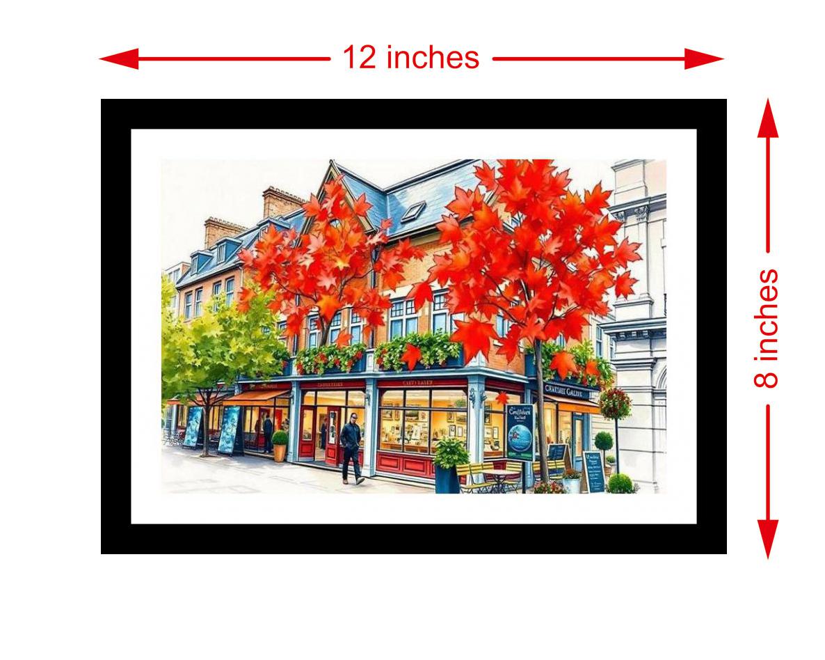 Charming European street bursts with autumnal charm, vibrant leaves adorning quaint shops. The reprint's colors burst with life, and the print quality is so sharp, it's like looking at the original masterpiece! The digital reprint boasts striking composition, breathing new life into the portrait's original beauty. Versatile Decor: Ideal for enhancing the aesthetic appeal of living rooms and bedrooms Enhanced Durability: Weather-shield laminated digital print for lasting vibrancy and protection Premium Framing: Constructed with a high-quality, durable fiber frame for long-term stability Precise Dimensions: 30 cm x 20 cm x 1 cm