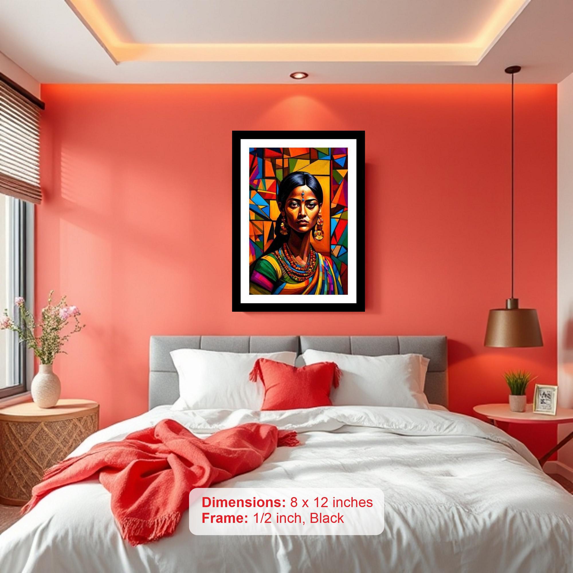 A vibrant, jewel-toned portrait of a woman pops against a striking geometric canvas. The colors are vibrant and the print captures every delicate detail of the original portrait. The reprint's composition is stunning! Perfectly balanced, it highlights the portrait's original beauty. Versatile Decor: Ideal for enhancing the aesthetic appeal of living rooms and bedrooms Enhanced Durability: Weather-shield laminated digital print for lasting vibrancy and protection Premium Framing: Constructed with a high-quality, durable fiber frame for long-term stability Precise Dimensions: 30 cm x 20 cm x 1 cm