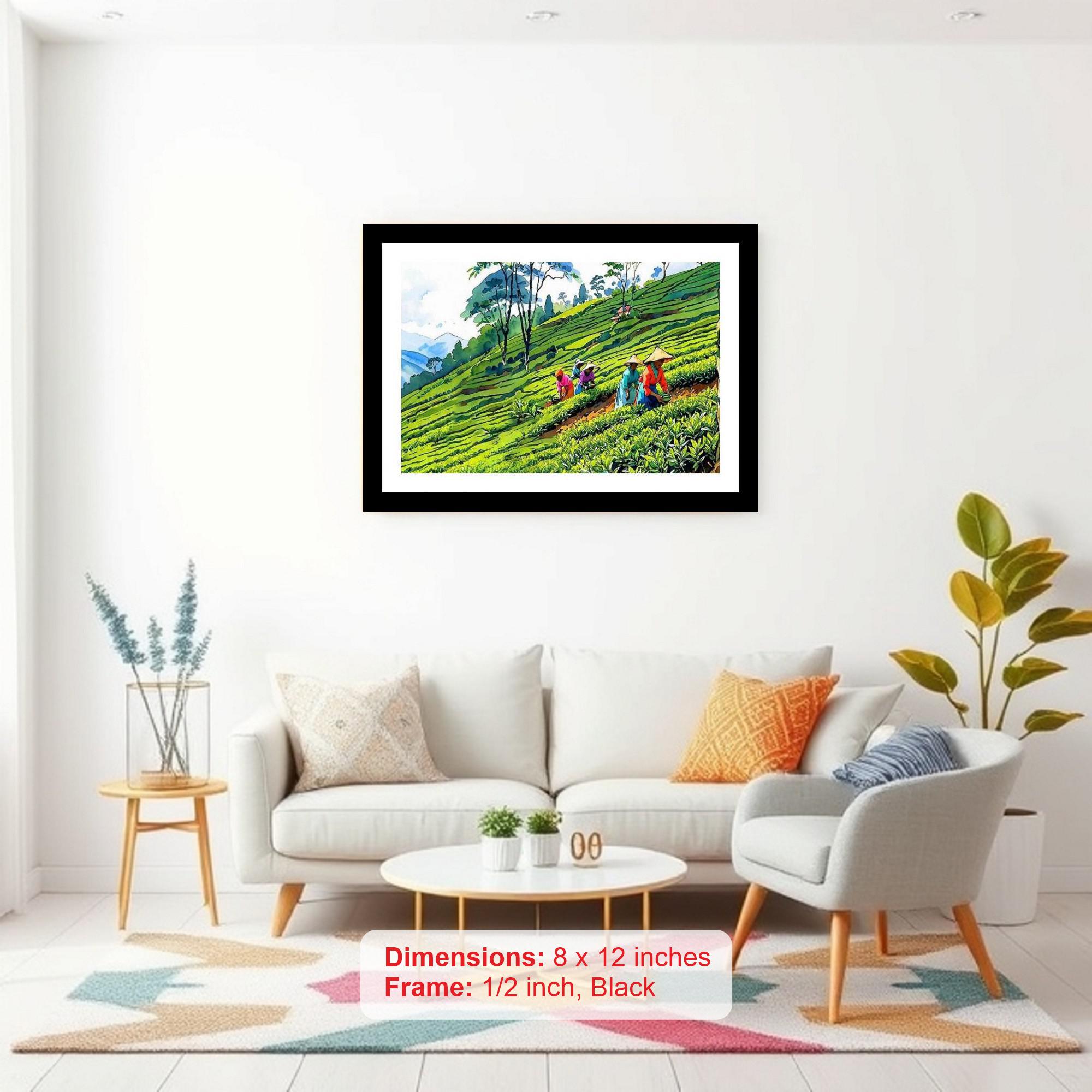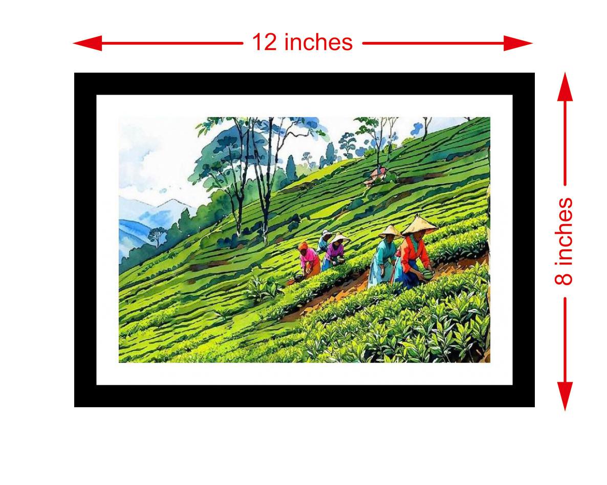 A stunning depiction of hardworking farmers harvesting tea on vibrant terraces, a testament to human effort and natural beauty. The reprint's vibrant colors and crisp details perfectly capture the portrait's beauty, a true work of art. The digital reprint boasts a striking composition, breathing new life into the portrait's timeless beauty. Versatile Decor: Ideal for enhancing the aesthetic appeal of living rooms and bedrooms Enhanced Durability: Weather-shield laminated digital print for lasting vibrancy and protection Premium Framing: Constructed with a high-quality, durable fiber frame for long-term stability Precise Dimensions: 30 cm x 20 cm x 1 cm