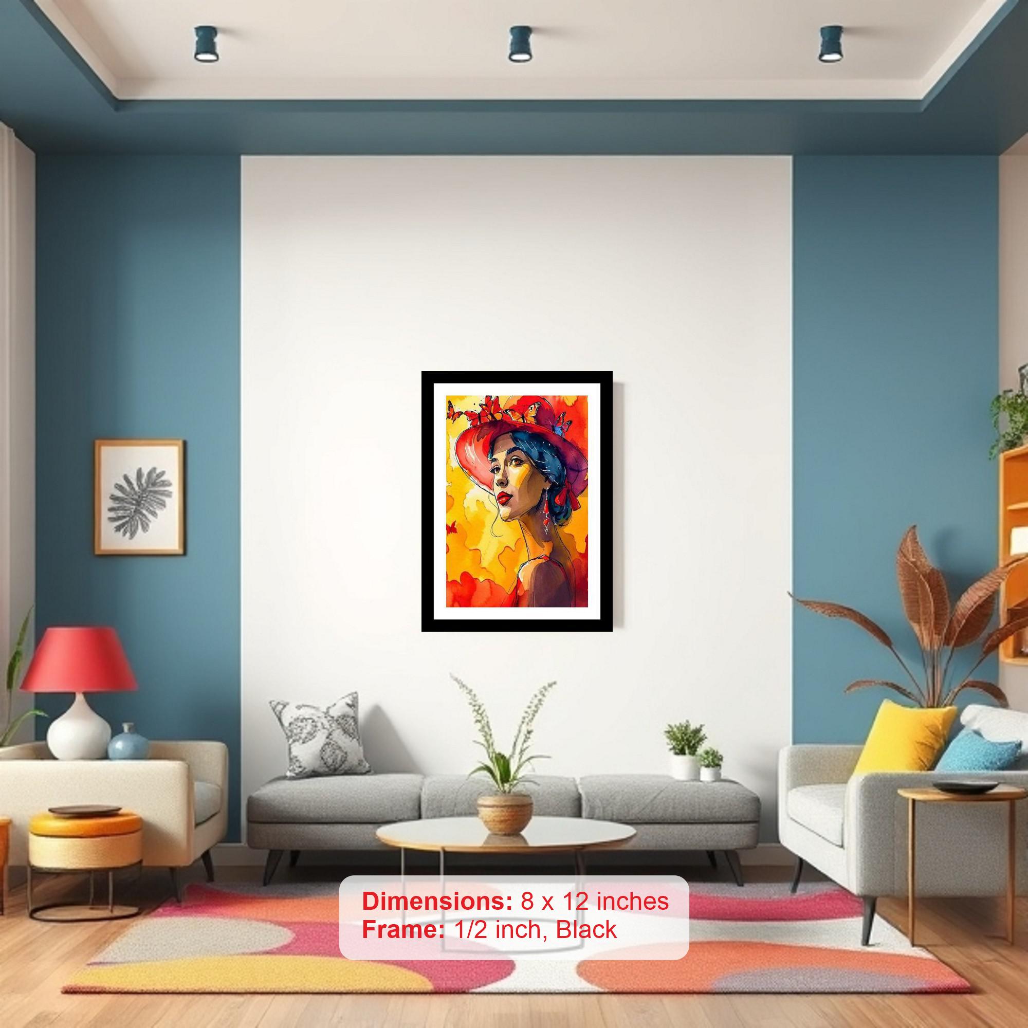 A captivating artwork where a woman in a red, butterfly-kissed hat dreams into the sunset, radiating serene beauty. Colors are vibrant and true, the print captures every detail of the original portrait beautifully. The reprint's composition is stunning; the portrait's essence beautifully captured in this digital rendition. Versatile Decor: Ideal for enhancing the aesthetic appeal of living rooms and bedrooms Enhanced Durability: Weather-shield laminated digital print for lasting vibrancy and protection Premium Framing: Constructed with a high-quality, durable fiber frame for long-term stability Precise Dimensions: 30 cm x 20 cm x 1 cm