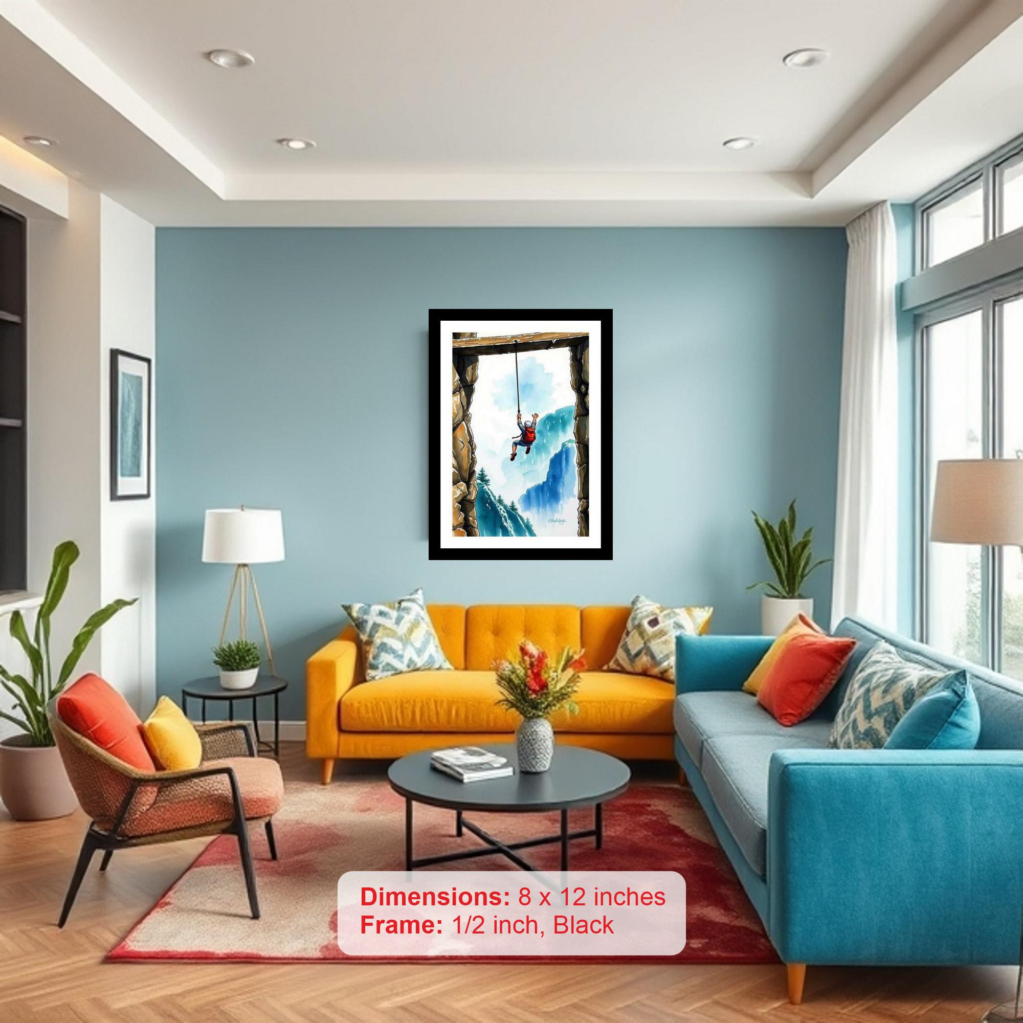 A breathtaking plunge captured: a climber's thrilling descent against a majestic mountain backdrop! The reprint's color vibrancy and print clarity truly captured the portrait's original beauty. The digital reprint boasts a striking composition, breathing new life into the portrait's timeless beauty. Versatile Decor: Ideal for enhancing the aesthetic appeal of living rooms and bedrooms Enhanced Durability: Weather-shield laminated digital print for lasting vibrancy and protection Premium Framing: Constructed with a high-quality, durable fiber frame for long-term stability Precise Dimensions: 30 cm x 20 cm x 1 cm