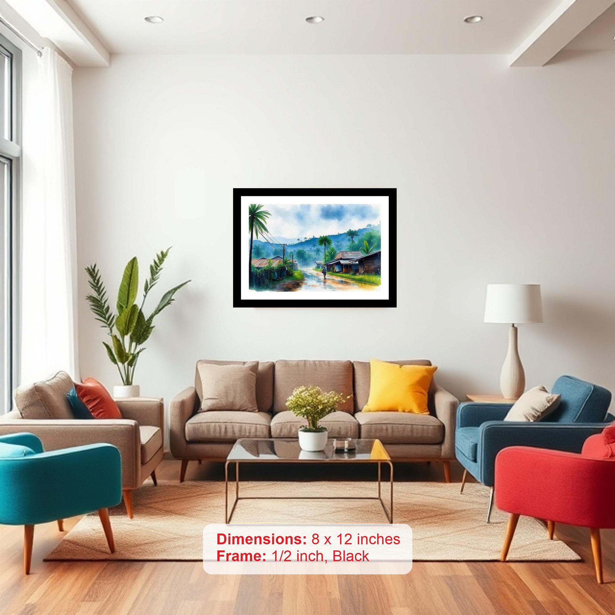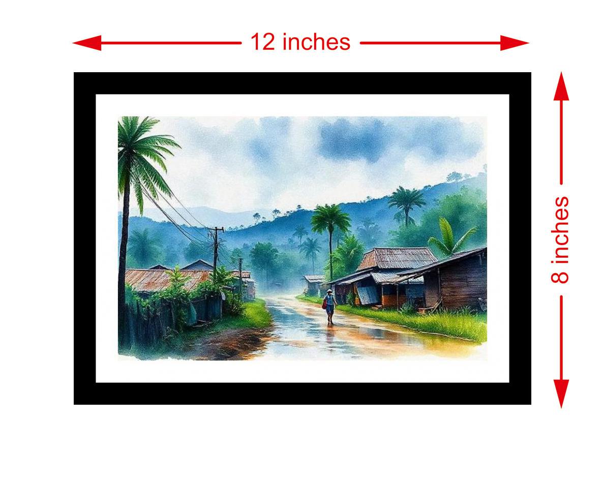 A lone traveler's journey through a rain-kissed village is captured beautifully, evoking serenity & quiet contemplation. The reprint's vibrant colors and crisp details truly capture the original portrait's beauty. The digital reprint boasts a strikingly beautiful composition, truly capturing the portrait's original essence. Versatile Decor: Ideal for enhancing the aesthetic appeal of living rooms and bedrooms Enhanced Durability: Weather-shield laminated digital print for lasting vibrancy and protection Premium Framing: Constructed with a high-quality, durable fiber frame for long-term stability Precise Dimensions: 30 cm x 20 cm x 1 cm