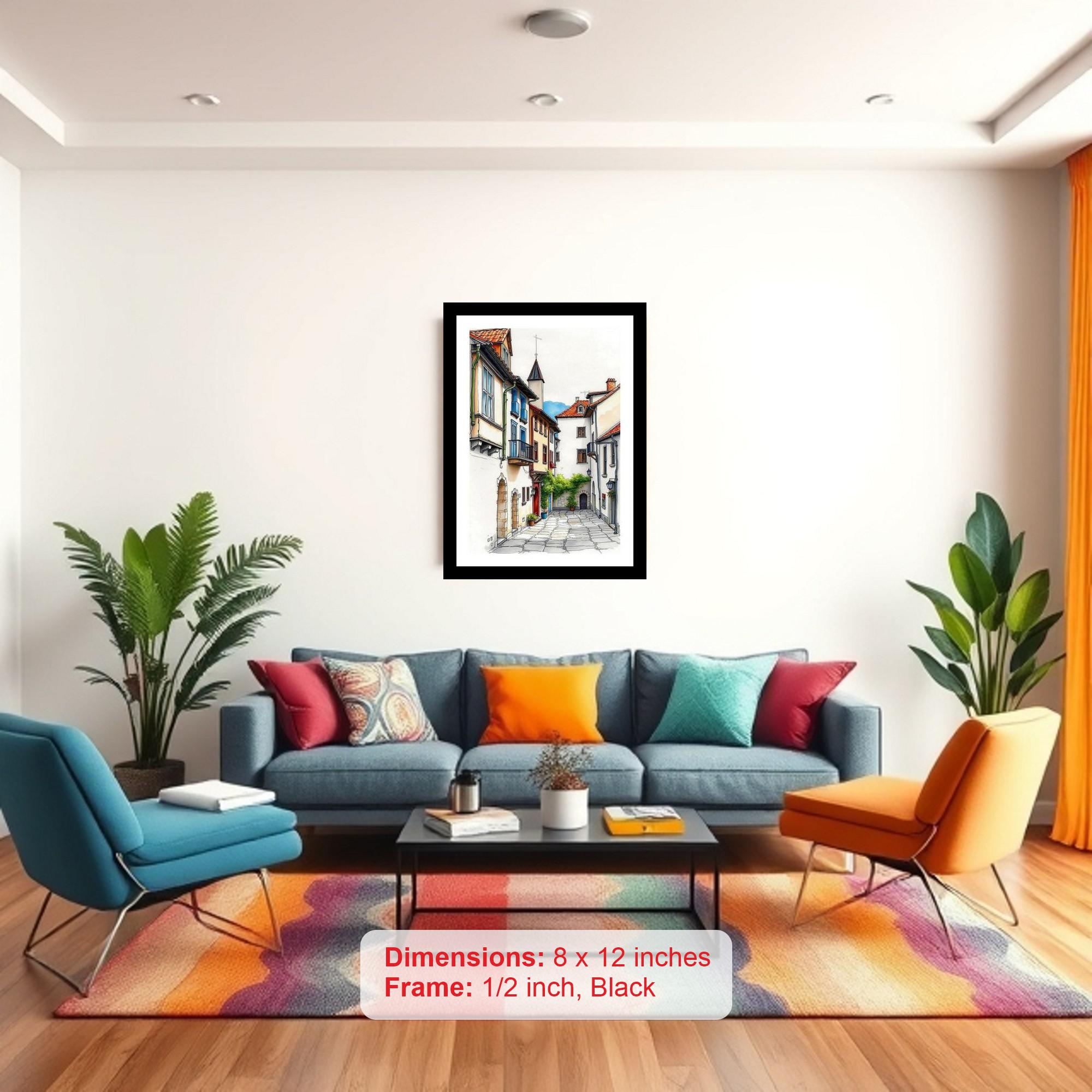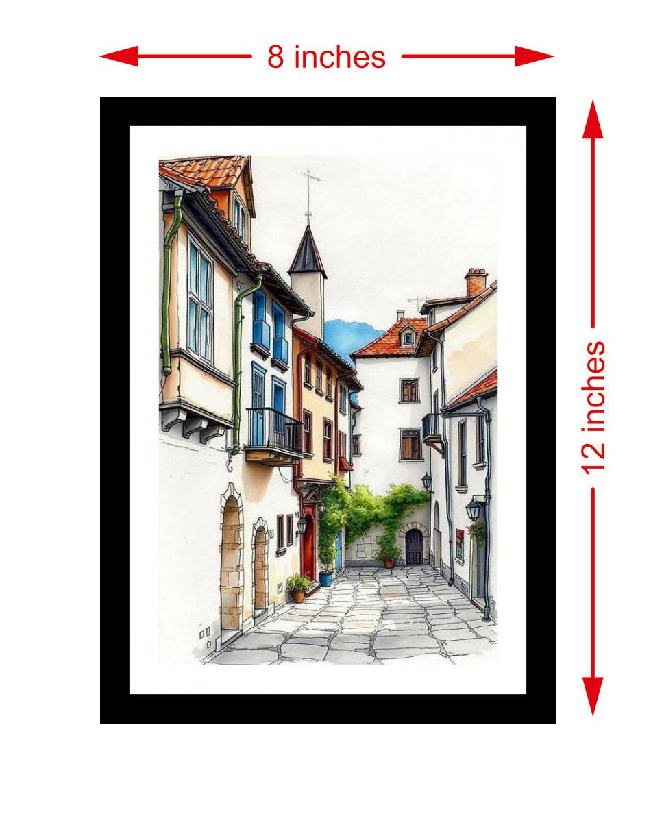 A vibrant European alley artwork charms with its colorful buildings and winding cobblestone path. The colors pop, the details sing! This reprint perfectly captures the portrait's original beauty. Stunning! The digital reprint's striking composition breathes new life into the portrait, a true visual masterpiece. Versatile Decor: Ideal for enhancing the aesthetic appeal of living rooms and bedrooms Enhanced Durability: Weather-shield laminated digital print for lasting vibrancy and protection Premium Framing: Constructed with a high-quality, durable fiber frame for long-term stability Precise Dimensions: 30 cm x 20 cm x 1 cm