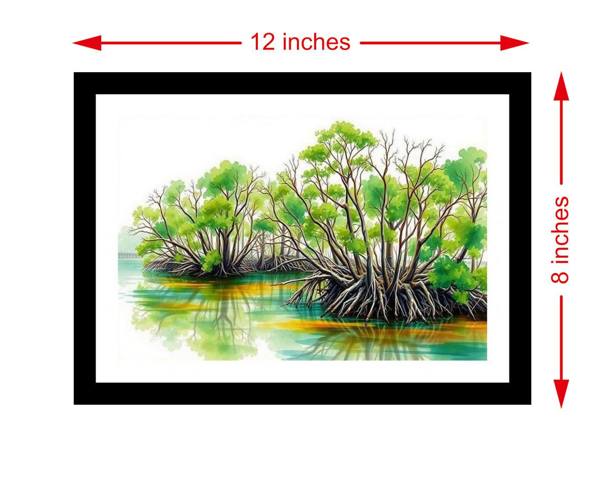 The artwork beautifully captures the lush mangrove's resilience and tranquility in a serene aquatic haven. The colors are vibrant, the print is sharp, and the portrait's beauty truly shines through. The digital reprint's striking composition breathes new life into the portrait, making it truly captivating. Versatile Decor: Ideal for enhancing the aesthetic appeal of living rooms and bedrooms Enhanced Durability: Weather-shield laminated digital print for lasting vibrancy and protection Premium Framing: Constructed with a high-quality, durable fiber frame for long-term stability Precise Dimensions: 30 cm x 20 cm x 1 cm