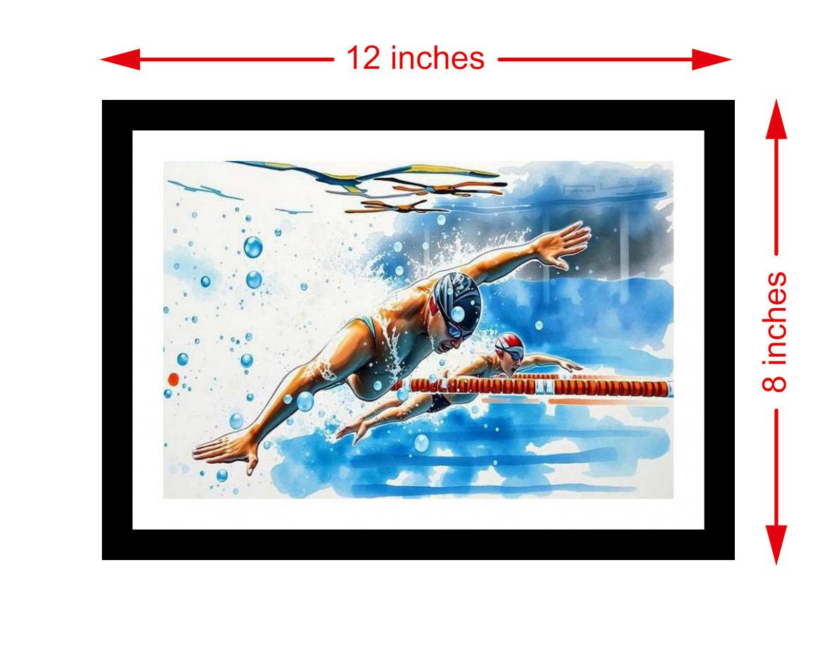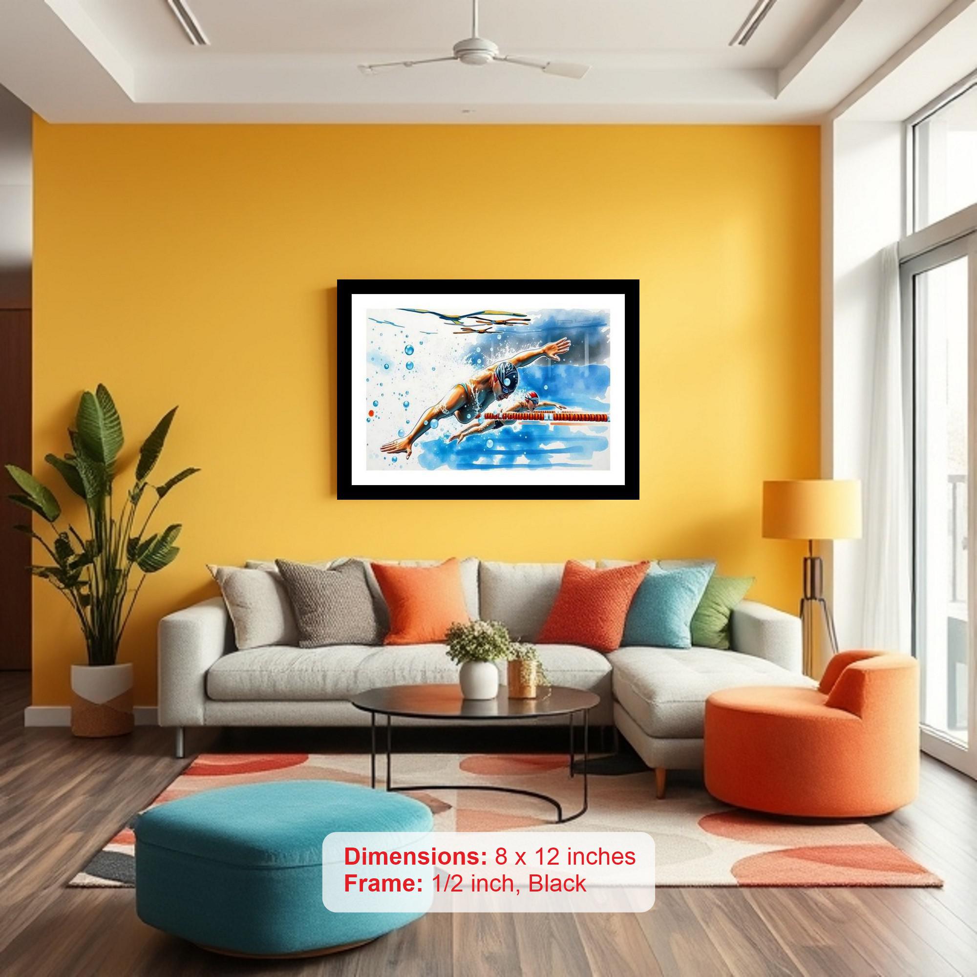 A vibrant, energetic artwork captures the fluid grace and power of swimmers in a mesmerizing blur of motion. The colors pop, and the print captures every detail of the original portrait beautifully. The portrait's reprint is stunning; the composition sings with clarity and depth. Versatile Decor: Ideal for enhancing the aesthetic appeal of living rooms and bedrooms Enhanced Durability: Weather-shield laminated digital print for lasting vibrancy and protection Premium Framing: Constructed with a high-quality, durable fiber frame for long-term stability Precise Dimensions: 30 cm x 20 cm x 1 cm