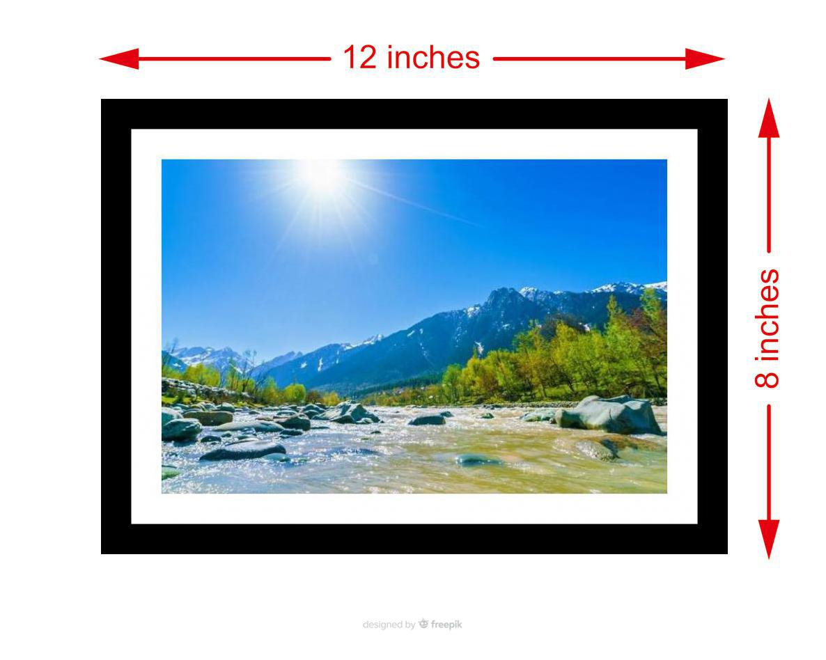 A stunning vista! Sun-kissed river winds through a vibrant valley, embraced by majestic, snow-capped peaks. Colors pop and the print is crisp, bringing the photograph to vibrant new life. The digital reprint boasts a striking composition, breathing new life into the photograph's inherent beauty. Versatile Decor: Ideal for enhancing the aesthetic appeal of living rooms and bedrooms Enhanced Durability: Weather-shield laminated digital print for lasting vibrancy and protection Premium Framing: Constructed with a high-quality, durable fiber frame for long-term stability Precise Dimensions: 30 cm x 20 cm x 1 cm