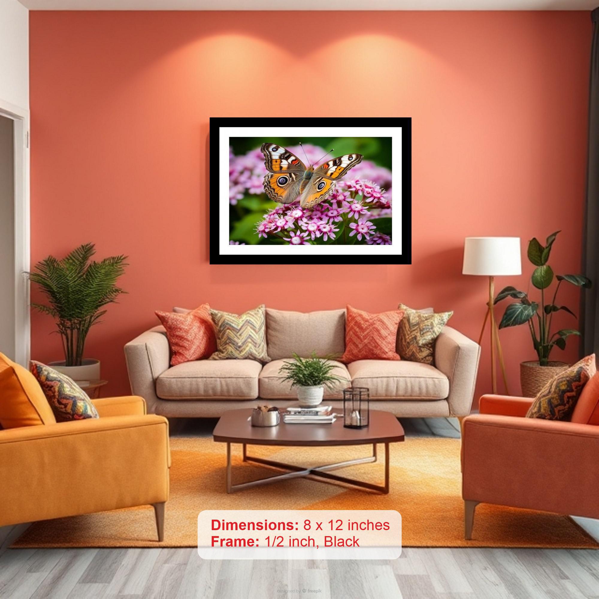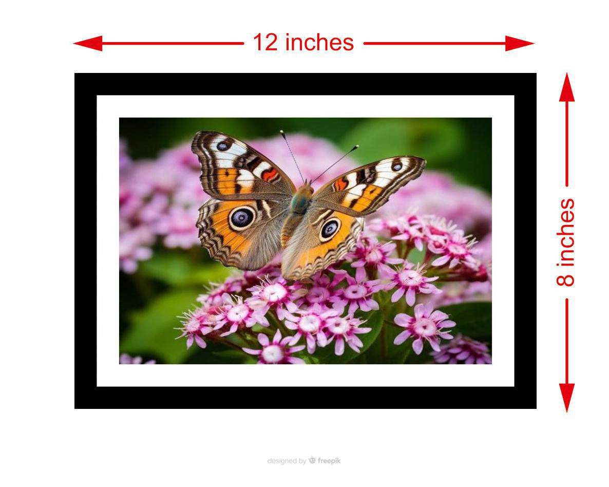 A stunning photo: vibrant butterfly graces pink blooms, a perfect moment of nature's beauty captured! Colors pop, details crisp, a true visual treat. The reprint boasts striking composition, breathing new life into the photograph's inherent beauty. Versatile Decor: Ideal for enhancing the aesthetic appeal of living rooms and bedrooms Enhanced Durability: Weather-shield laminated digital print for lasting vibrancy and protection Premium Framing: Constructed with a high-quality, durable fiber frame for long-term stability Precise Dimensions: 30 cm x 20 cm x 1 cm