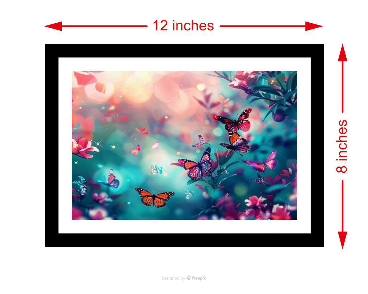 A symphony of color! Butterflies dance in a lush, blooming garden, a visual delight. Colors pop, details are crisp. The photo's beauty truly shines. The digital reprint's striking composition breathed new life into the beautiful photograph, captivating the viewer. Versatile Decor: Ideal for enhancing the aesthetic appeal of living rooms and bedrooms Enhanced Durability: Weather-shield laminated digital print for lasting vibrancy and protection Premium Framing: Constructed with a high-quality, durable fiber frame for long-term stability Precise Dimensions: 30 cm x 20 cm x 1 cm