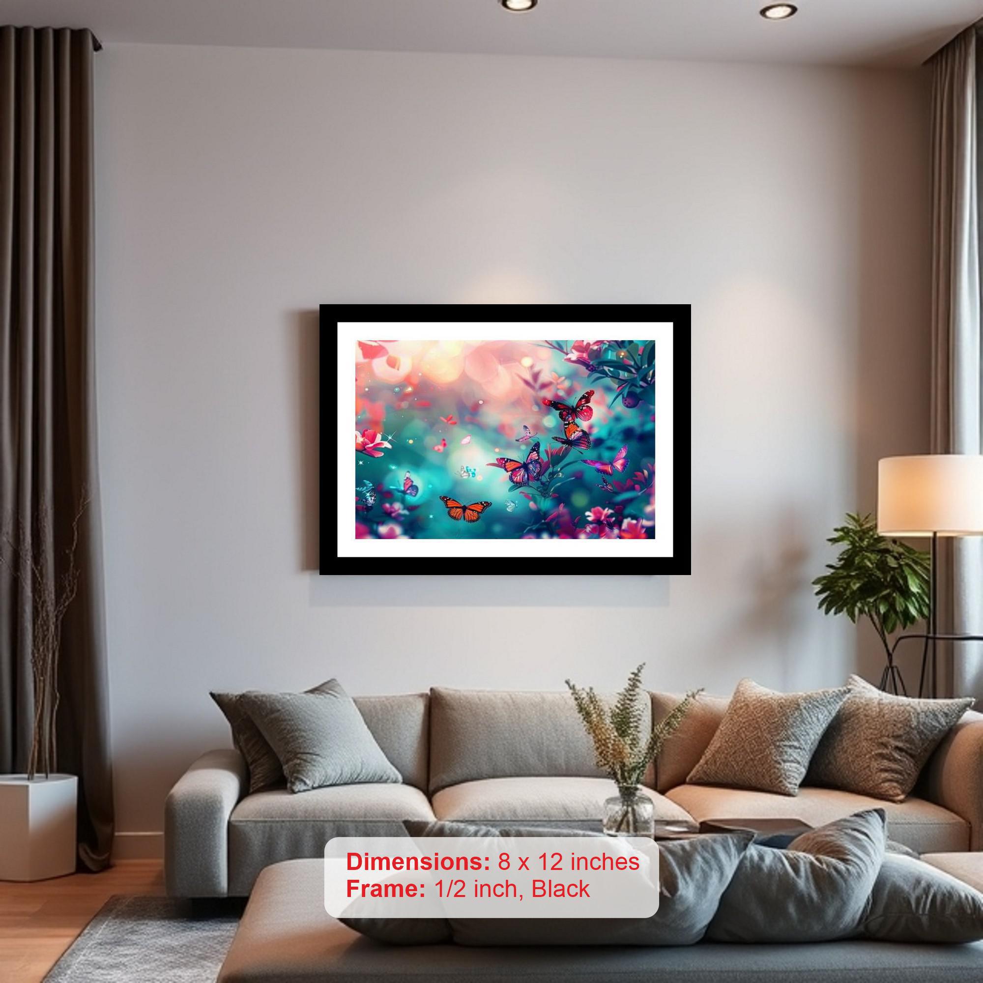 Butterfly Garden Dreamscape: A Vibrant Floral Fantasy Wall Art, Interior Accents, Framing Solutions, Residential/Commercial Decor, Premium Gifts | Size: 8 x 12 inches