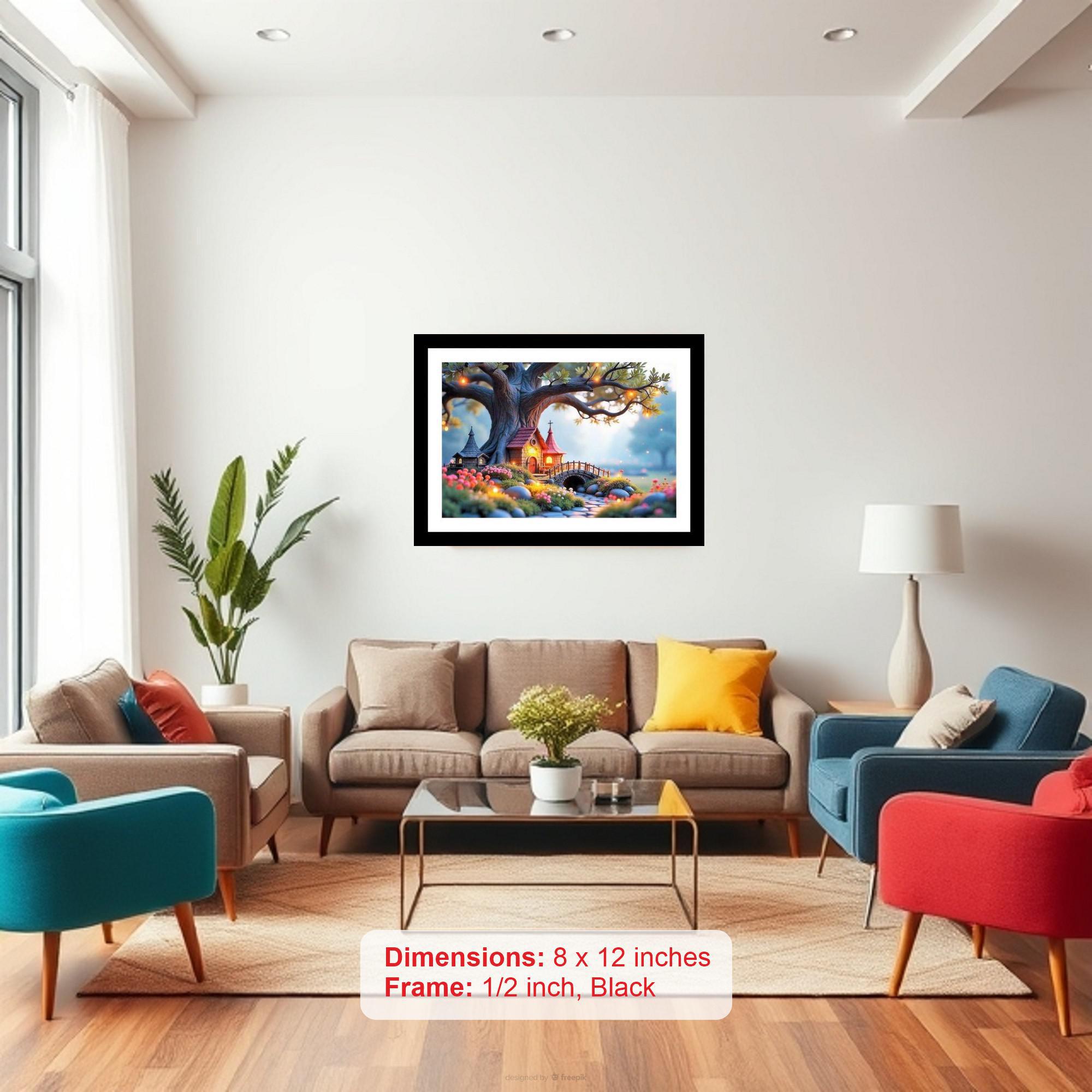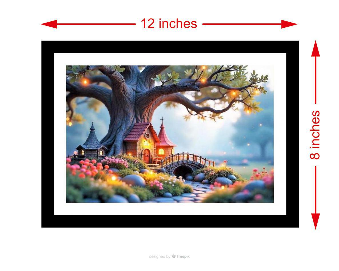 A magical masterpiece! Glowing tree illuminates a charming fairytale village with enchanting detail. The reprint bursts with vibrant hues and captures every delicate detail of the original portrait beautifully! The portrait's digital reprint boasts a striking composition, flawlessly capturing its original beauty. Versatile Decor: Ideal for enhancing the aesthetic appeal of living rooms and bedrooms Enhanced Durability: Weather-shield laminated digital print for lasting vibrancy and protection Premium Framing: Constructed with a high-quality, durable fiber frame for long-term stability Precise Dimensions: 30 cm x 20 cm x 1 cm