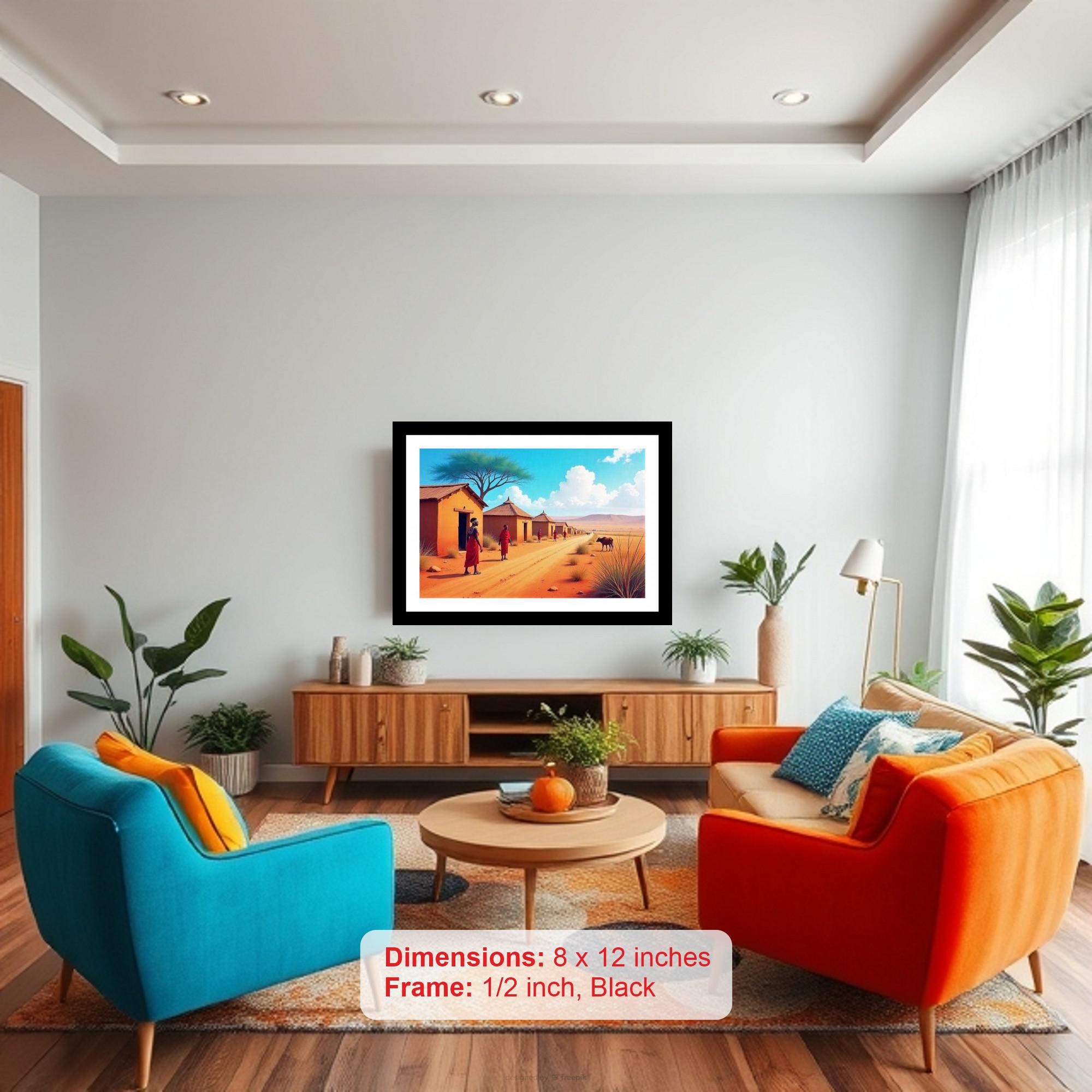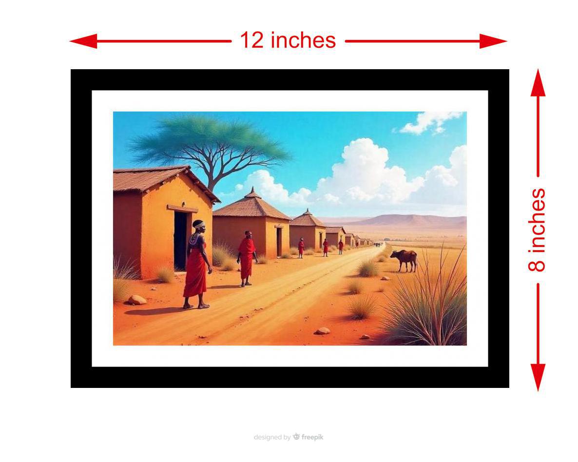 Sun-drenched African village art: Red-robed figures grace a dusty path, capturing serene beauty. The colors are vibrant, the print is crisp, and the detail brings this portrait to life. The reprint's composition is striking! The portrait's digital rebirth breathes new life into its original beauty. Versatile Decor: Ideal for enhancing the aesthetic appeal of living rooms and bedrooms Enhanced Durability: Weather-shield laminated digital print for lasting vibrancy and protection Premium Framing: Constructed with a high-quality, durable fiber frame for long-term stability Precise Dimensions: 30 cm x 20 cm x 1 cm