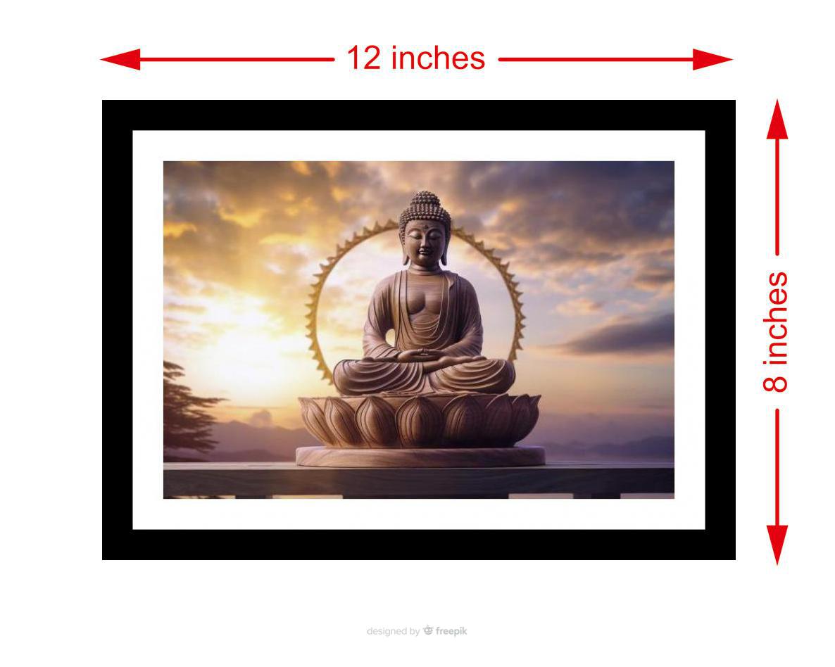 Golden mandala frames serene Buddha in sunset, radiating peaceful enlightenment. The reprinted photo bursts with vibrant color and exceptional print clarity, a true visual treat. The reprint's composition is stunning! The digital clarity elevates the original photo's beauty. Versatile Decor: Ideal for enhancing the aesthetic appeal of living rooms and bedrooms Enhanced Durability: Weather-shield laminated digital print for lasting vibrancy and protection Premium Framing: Constructed with a high-quality, durable fiber frame for long-term stability Precise Dimensions: 30 cm x 20 cm x 1 cm
