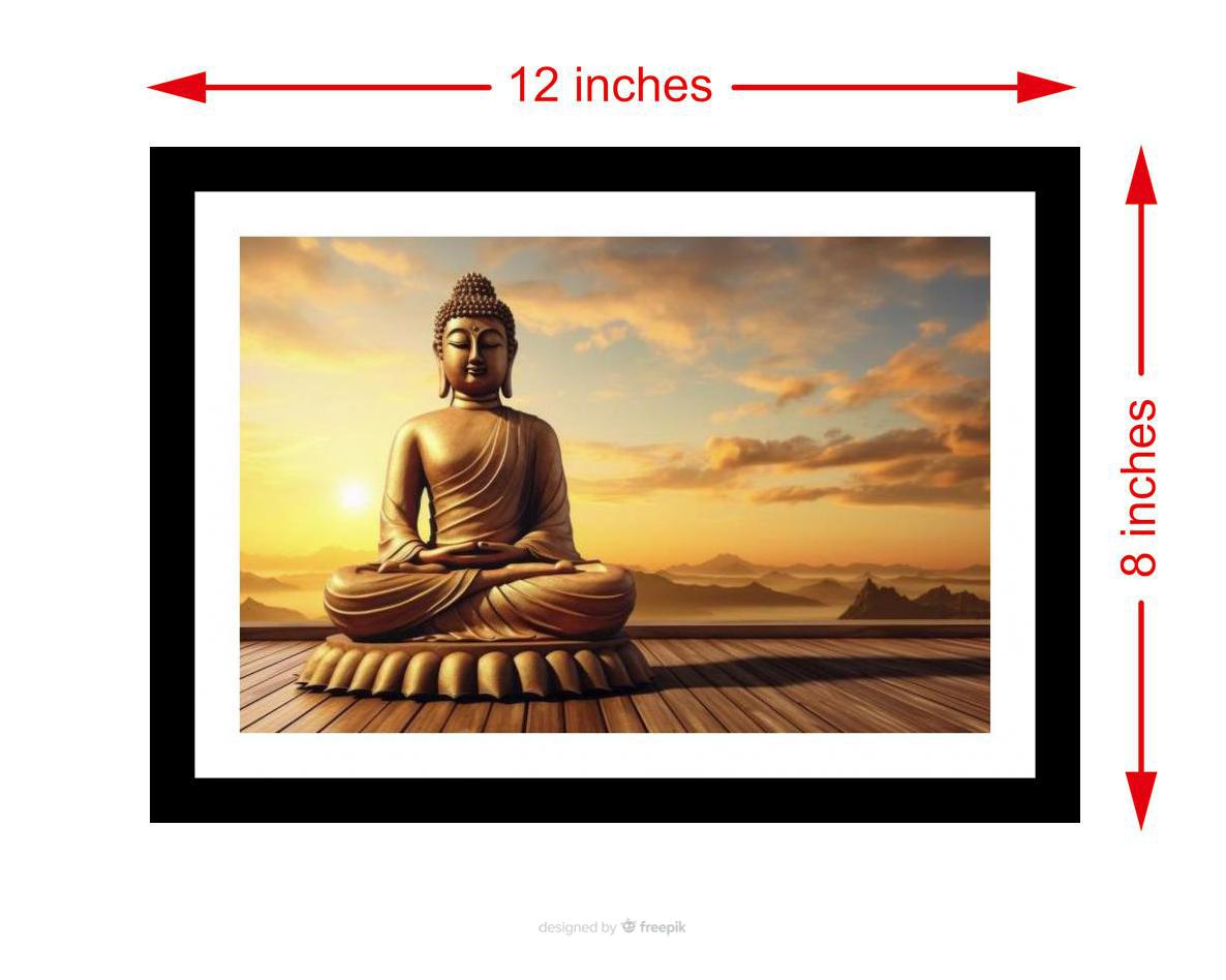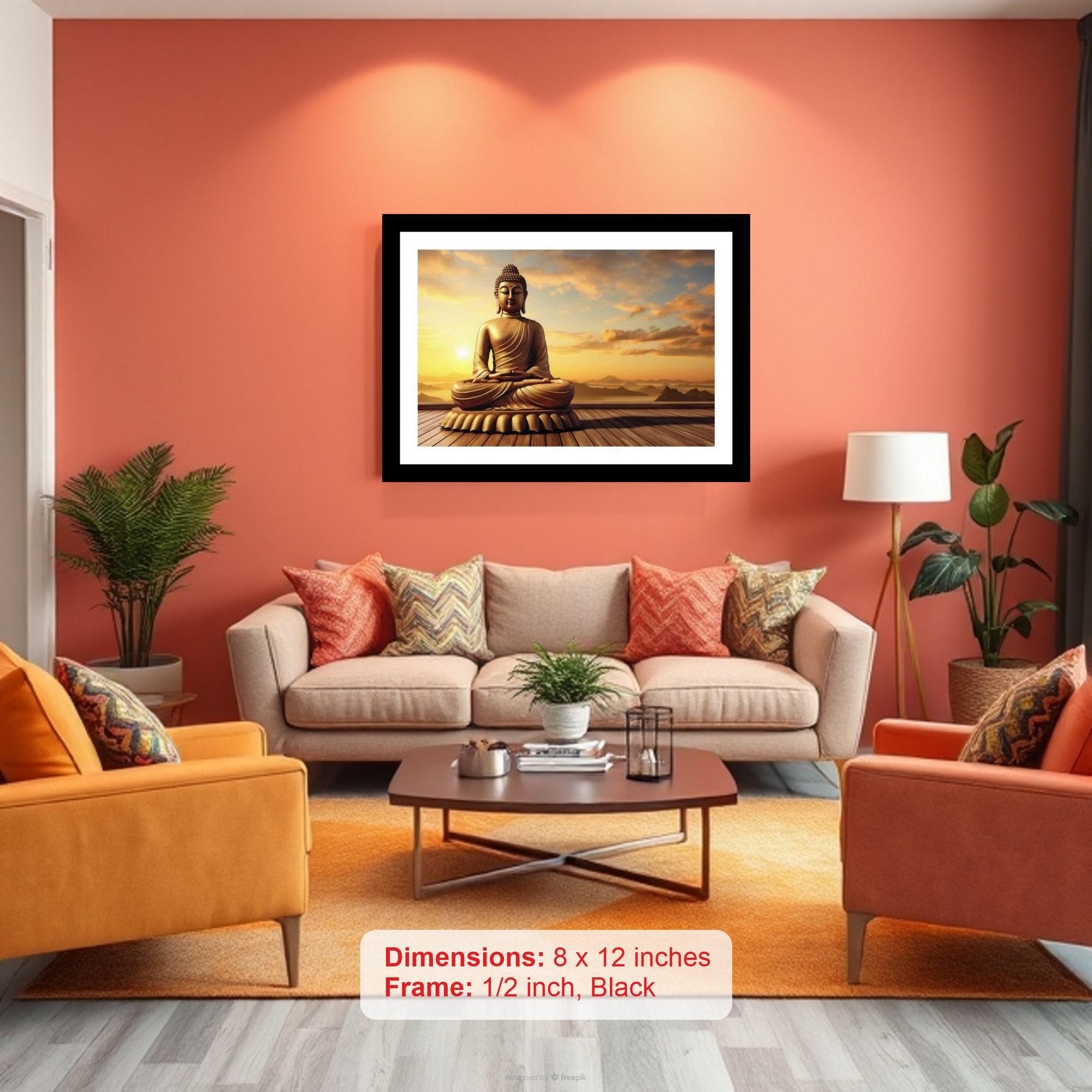 Golden Buddha's serene sunset meditation: A tranquil landscape meets spiritual awakening. Colors pop, print is crisp, capturing the photo's beauty perfectly. The digital reprint boasts a striking composition, breathing new life into a beautiful, timeless photograph. Versatile Decor: Ideal for enhancing the aesthetic appeal of living rooms and bedrooms Enhanced Durability: Weather-shield laminated digital print for lasting vibrancy and protection Premium Framing: Constructed with a high-quality, durable fiber frame for long-term stability Precise Dimensions: 30 cm x 20 cm x 1 cm