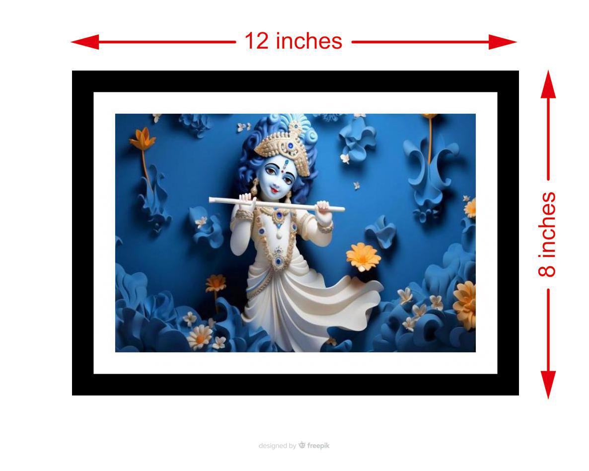 A captivating image of youthful Krishna's flute song amidst a lush floral paradise, a visual symphony of divinity and nature. Colors are vibrant and true, print quality is crisp and captures every gorgeous detail. The reprint's composition is stunning! Masterful balance and clarity make it a truly captivating visual experience. Versatile Decor: Ideal for enhancing the aesthetic appeal of living rooms and bedrooms Enhanced Durability: Weather-shield laminated digital print for lasting vibrancy and protection Premium Framing: Constructed with a high-quality, durable fiber frame for long-term stability Precise Dimensions: 30 cm x 20 cm x 1 cm