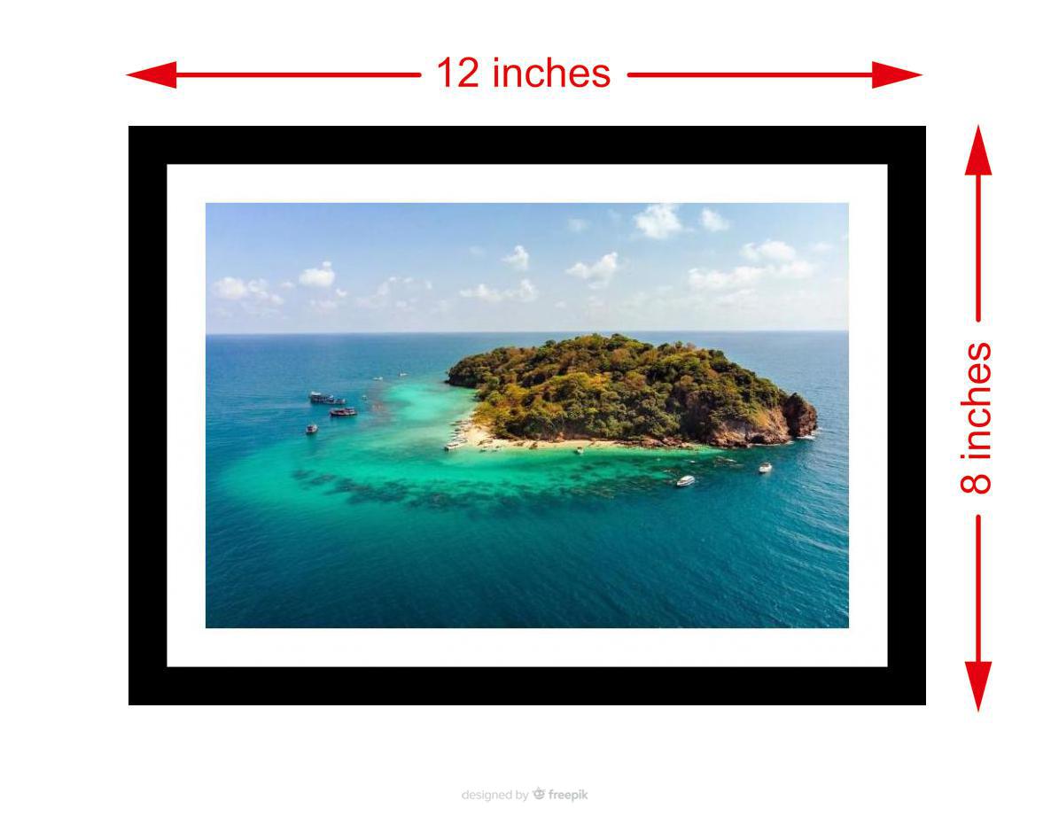 A stunning tropical paradise! Turquoise waters sparkle, boats dot the scene, a perfect island escape. Colors pop, print is sharp and clear - the photo's beauty truly shines through. The reprint's masterful composition breathes new life into the photograph, making it truly captivating. Versatile Decor: Ideal for enhancing the aesthetic appeal of living rooms and bedrooms Enhanced Durability: Weather-shield laminated digital print for lasting vibrancy and protection Premium Framing: Constructed with a high-quality, durable fiber frame for long-term stability Precise Dimensions: 30 cm x 20 cm x 1 cm