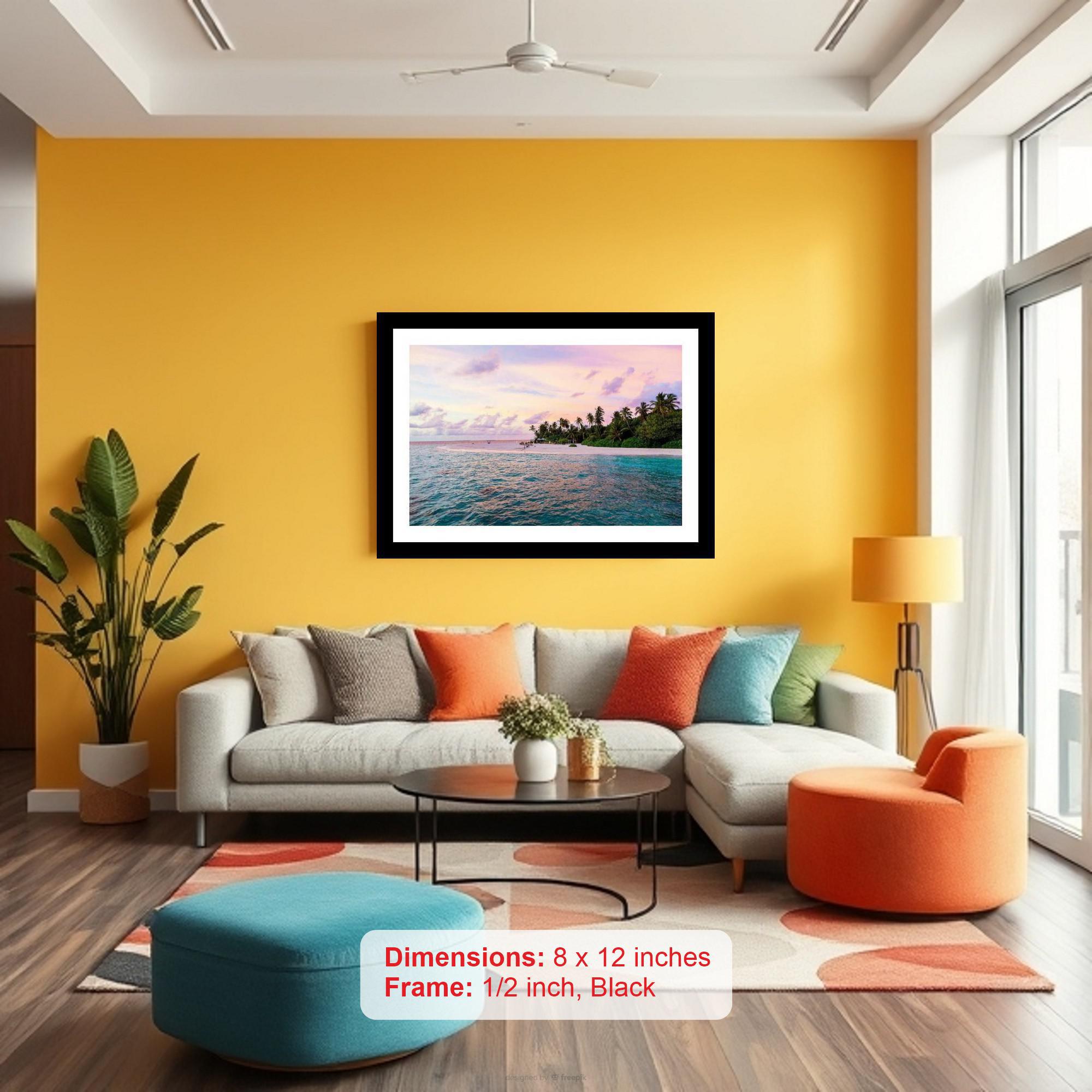 A tropical sunset ablaze with color captures a paradise found in a breathtaking photograph. Colors pop, details are crisp - a true testament to quality digital reproduction. The digital reprint boasts a striking composition; the photographer's eye shines through with stunning clarity. Versatile Decor: Ideal for enhancing the aesthetic appeal of living rooms and bedrooms Enhanced Durability: Weather-shield laminated digital print for lasting vibrancy and protection Premium Framing: Constructed with a high-quality, durable fiber frame for long-term stability Precise Dimensions: 30 cm x 20 cm x 1 cm