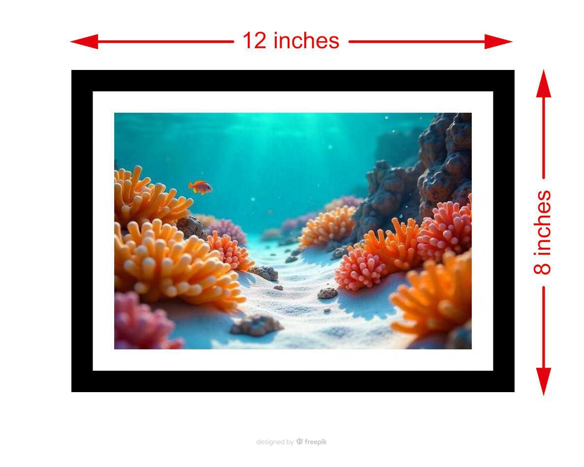 A stunning snapshot of ocean life: vibrant coral, a lone fish, and a sun-drenched reef create a thriving underwater Eden. The reprint bursts with vibrant, true-to-life color and boasts impressively sharp detail. A visual treat. The digital reprint boasts a striking composition, breathing new life into a beautiful photograph. Versatile Decor: Ideal for enhancing the aesthetic appeal of living rooms and bedrooms Enhanced Durability: Weather-shield laminated digital print for lasting vibrancy and protection Premium Framing: Constructed with a high-quality, durable fiber frame for long-term stability Precise Dimensions: 30 cm x 20 cm x 1 cm